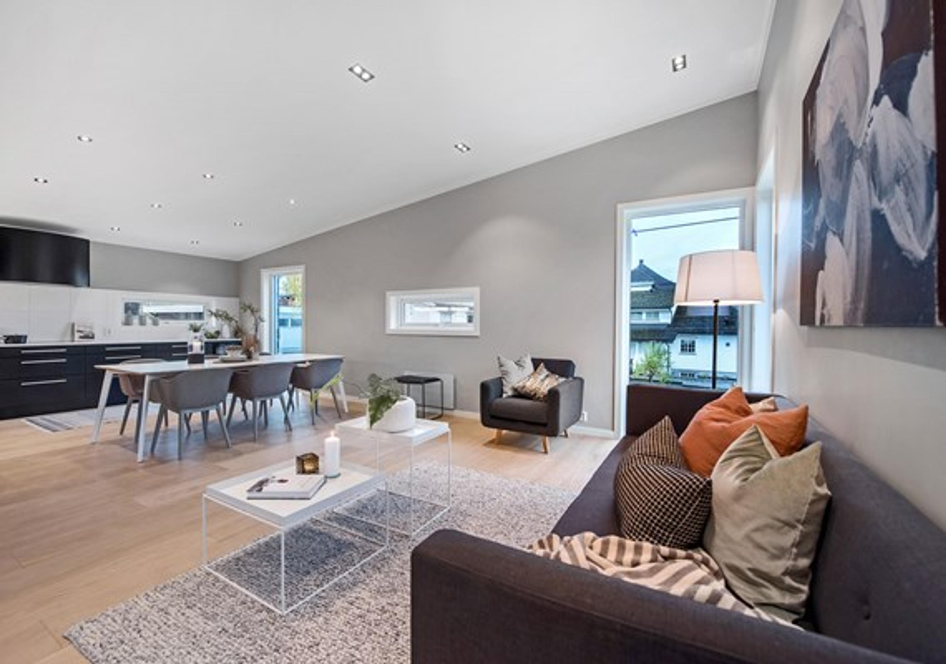 - Vi ser en økende etterspørsel etter åpne romløsninger og store vinduer, som slipper mye lys inn og gir godt utsyn. Samtidig som behovet for store tv-stuer stadig blir mindre. I dag ser vi jo mer på alle andre skjermer enn tv-skjermen, noe som også avspeiler seg i folks ønsker. Et stort kjøkken med plass til stort spisebord har blitt viktigere for mange, forklarer byggmesteren.