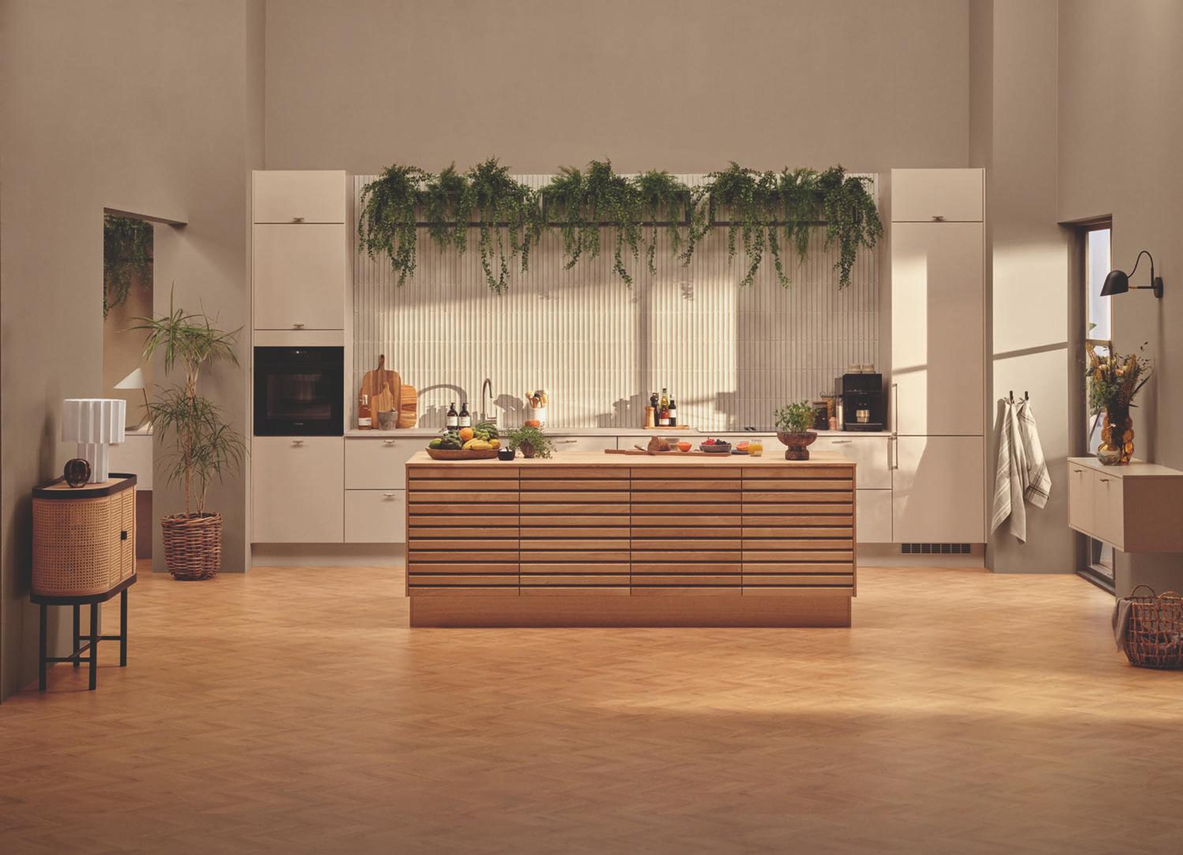 I 2025 blir kjøkkenet et rolig og harmonisk fristed der varme og naturlige farger skaper en innbydende stemning. Nøytrale nyanser som jordfarger, beige og den moderne «greige» dominerer og byr på tidløs eleganse. Samtidig fremhever materialer som stein, keramikk og eik den naturlige estetikken og gir kjøkkenet en taktil og eksklusiv følelse.