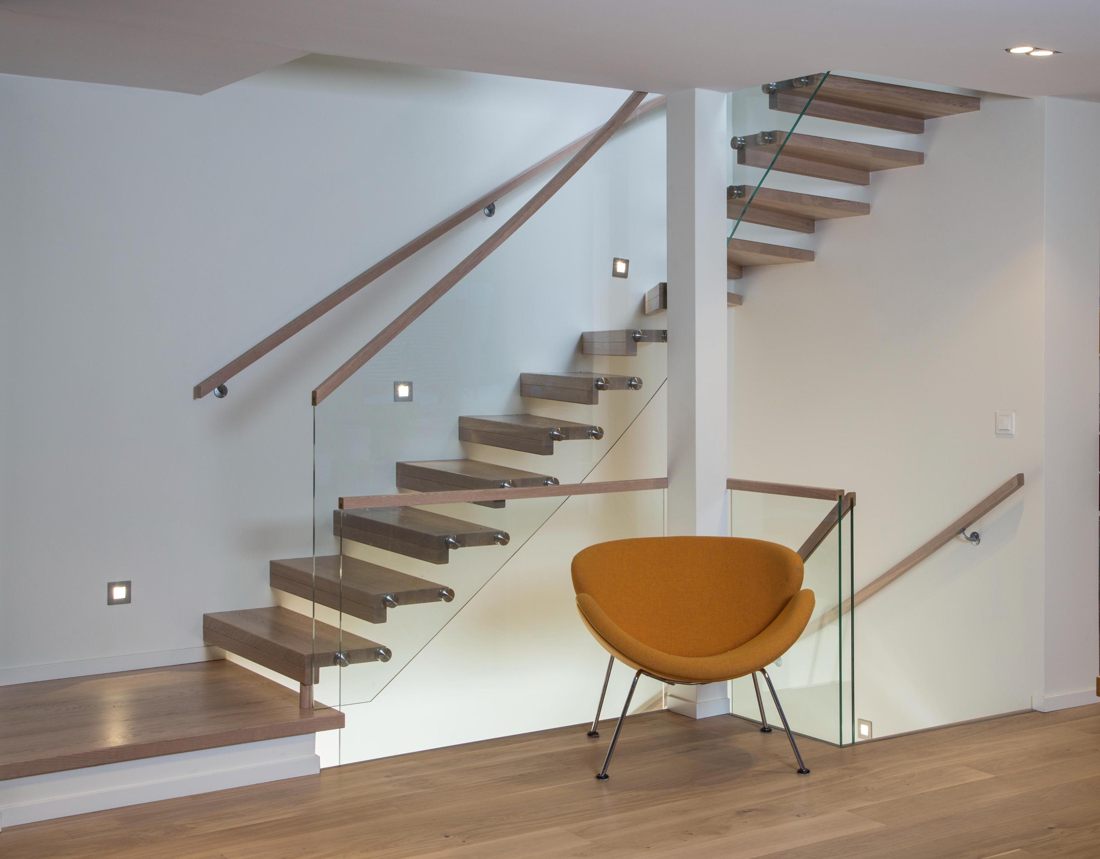 Glass i rekkverk har blitt mer og mer populært de siste årene, spesielt til trapper i minimalistisk stil. Glass gir luftighet i rommet, og kombineres gjerne med underliggende vanger og åpne trinn for å understreke dette.