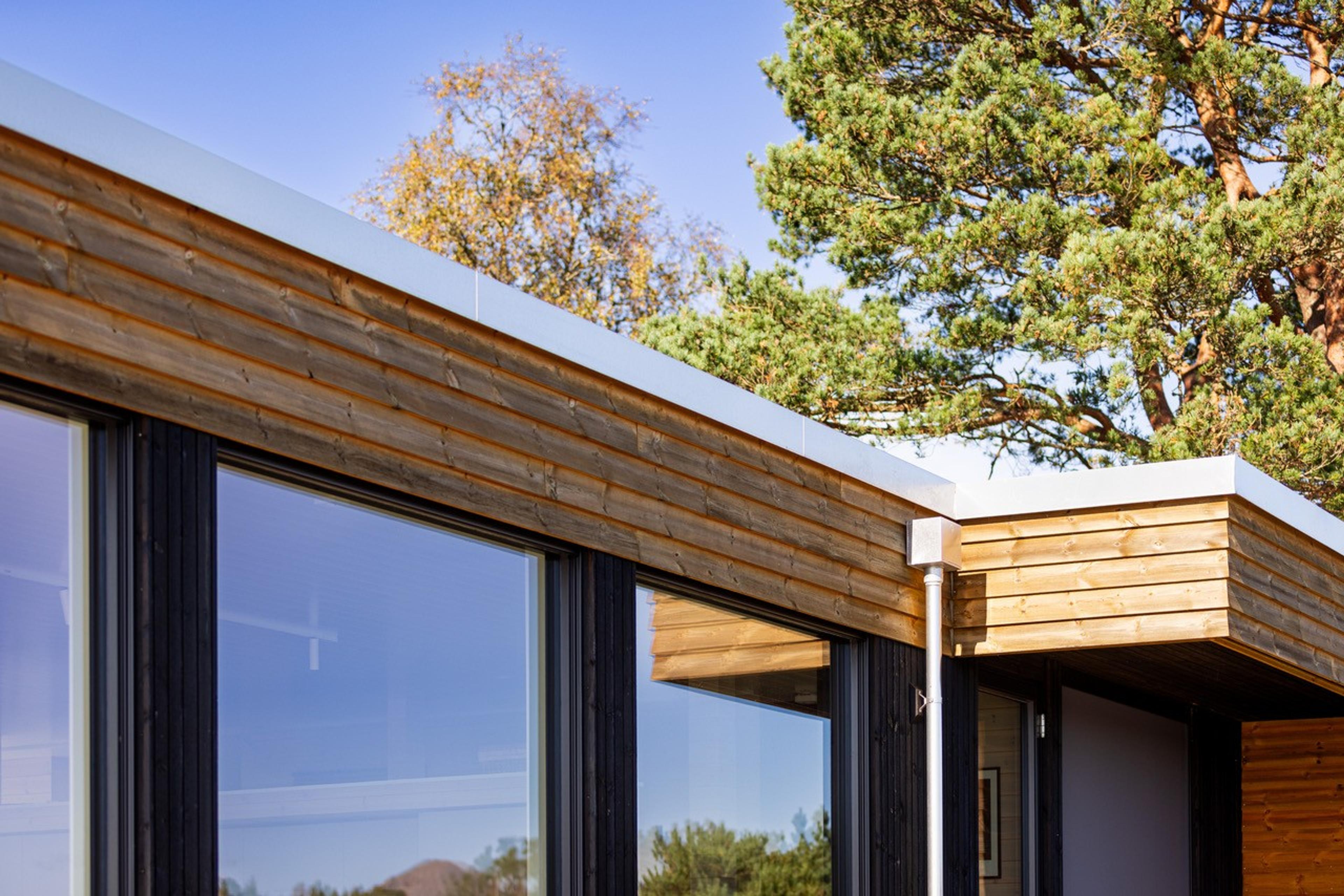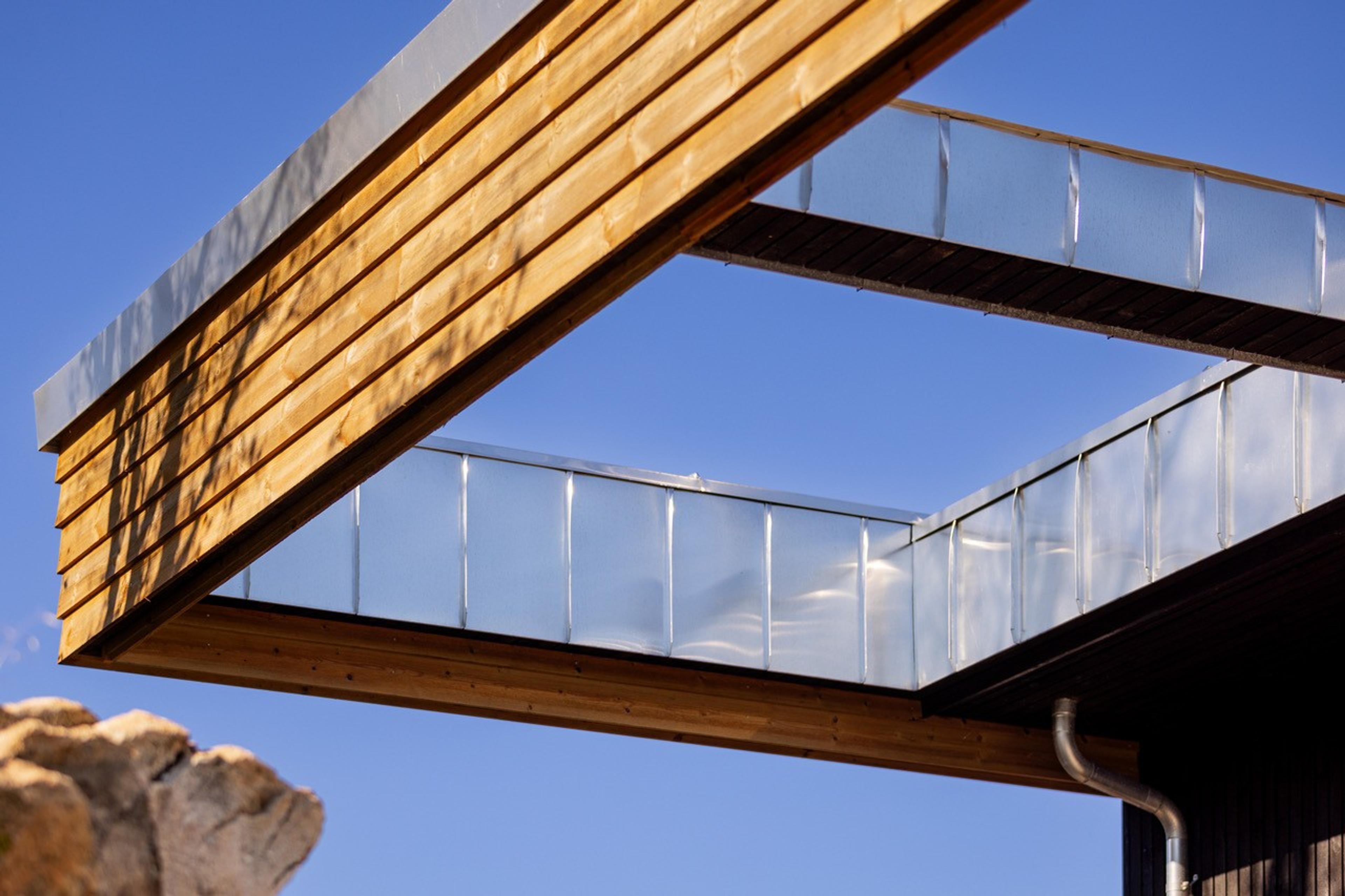 Alle utvendige hjørner er gjæret for å unngå brå overganger. Dette gir et renere og mer presist uttrykk, og krever nøyaktighet og faglig styrke i utførelsen. Karmer, overganger og takvinduer er nøye tilpasset helheten, slik at detaljene bygger opp under det arkitektoniske uttrykket.