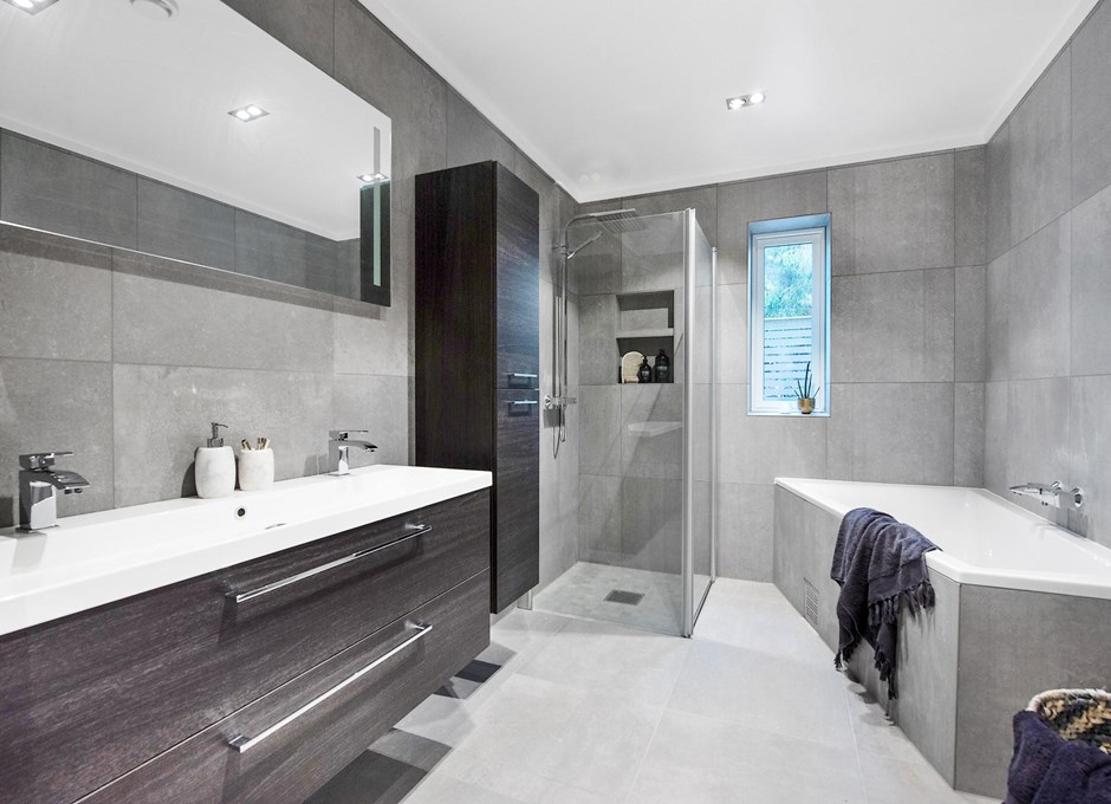 - Tanken var å gjøre det praktisk for en familie med små og mellomstore barn. Derfor har vi lagt det største badet i første etasje, med god plass til både dusj og badekar og kort vei fra barnerommene. Etter hvert ønsker kanskje eldstemann å flytte ned i den store og romslige kjellerstuen, før han eller hun flytter ut eller inn i hybelleiligheten på samme plan. Her er det mange muligheter for en stor familie.