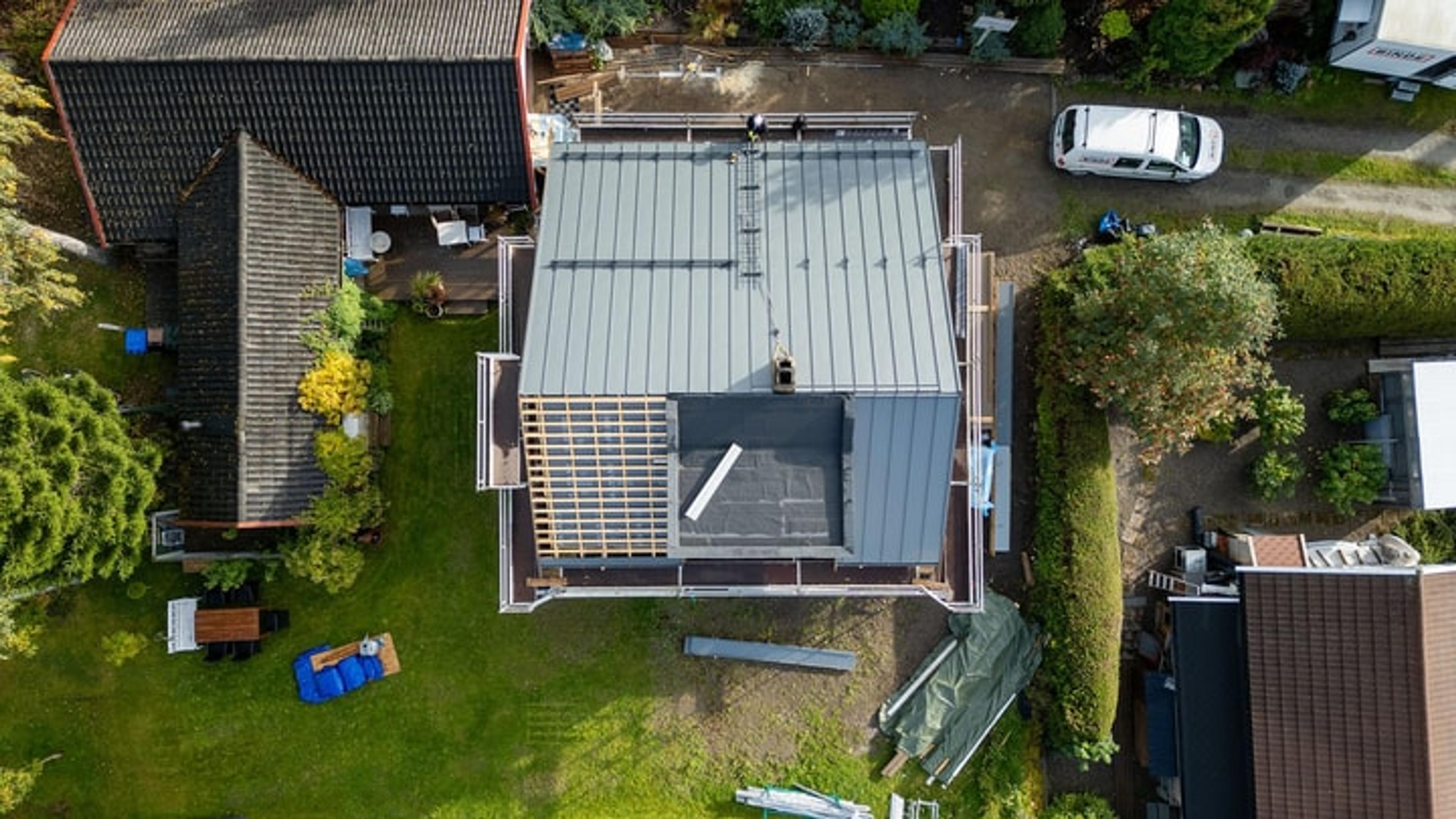Husets bygningskropp har blitt grundig tettet. Taket er etterisolert og rettet opp, mens grunnmuren og veggene har fått ekstra isolasjon. I tillegg er det montert en vindsperre, som sørger for at huset nå fremstår som tett og godt isolert.