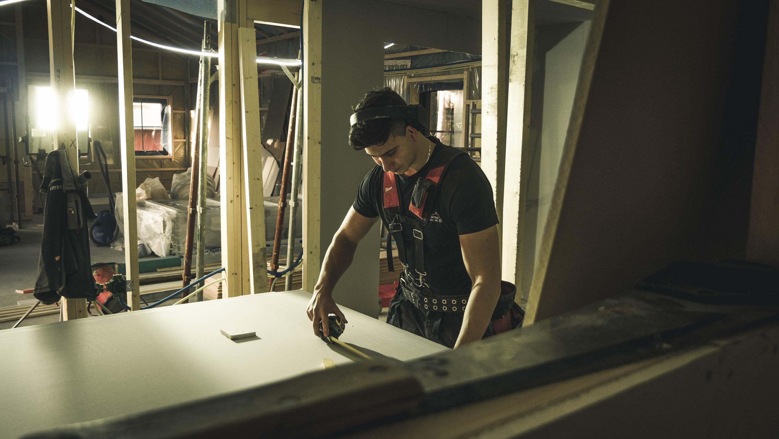 En av våre dyktige håndverkere i arbeid, hvor kvalitet og detaljer prioriteres.