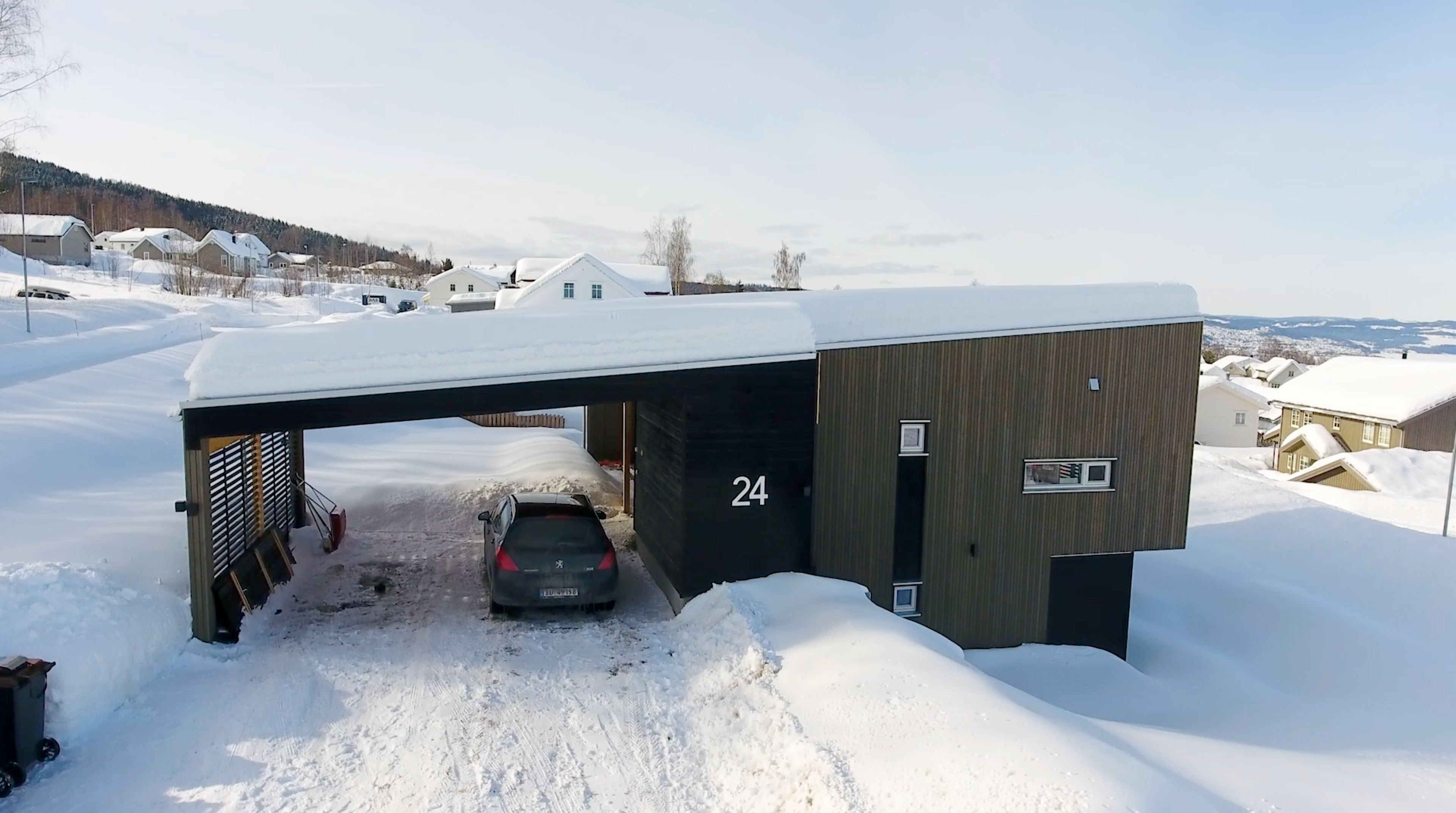 Selger Bjørn Åge Scheide hos Mesterhus innlandet, forteller at paret har fått en kundetilpasset Signatur 301. Huset har fått utvidet carport med plass til to biler. De har trekt sportsboden bakover, for å få til overbygd inngangsparti, og sånn at man kan gå tørrskodd inn i huset. Det ga også noe overbygg på uteplassen.