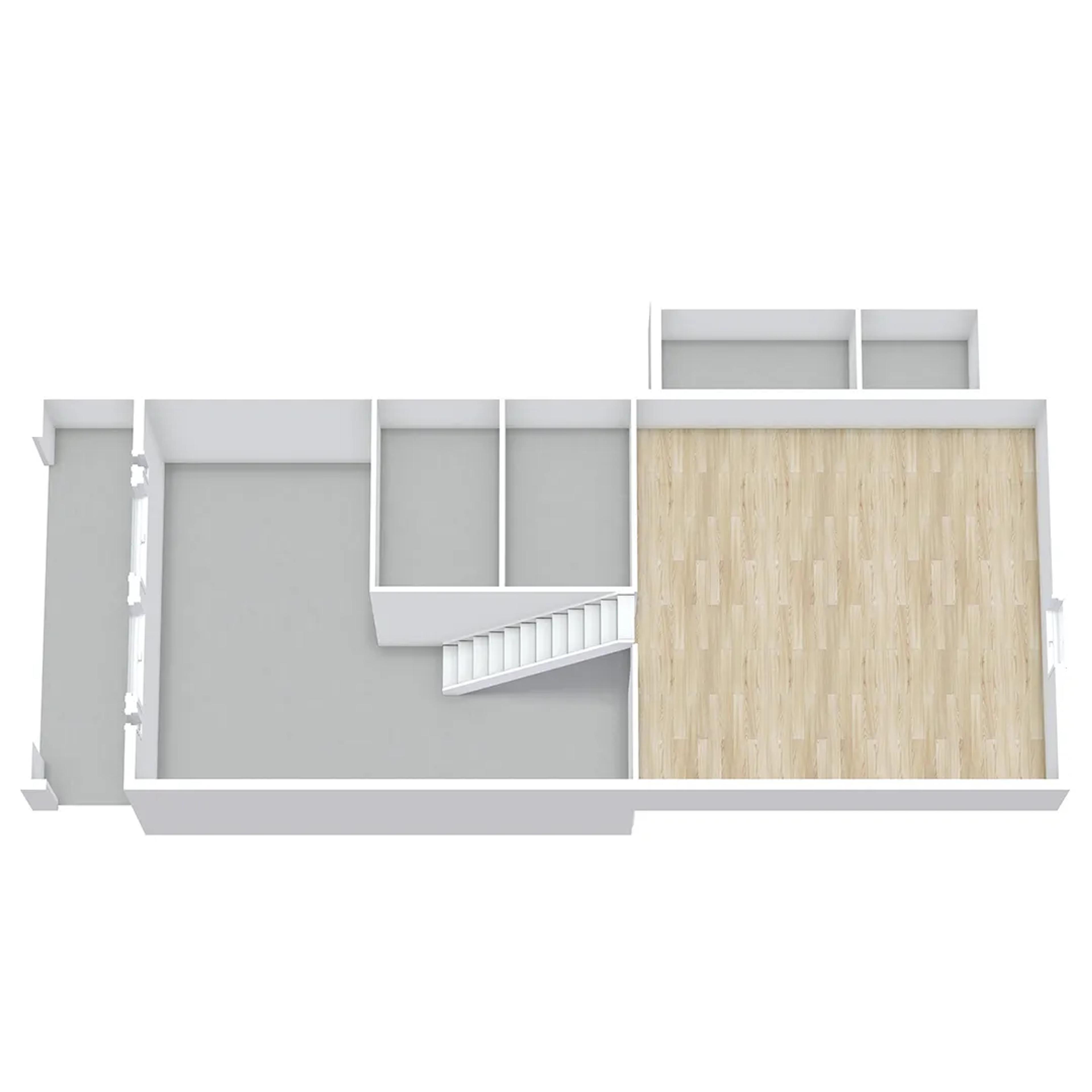 Trappen opp til hemsen har gode stigningsmål med inntrinn og opptrinn som gir ledig plass til enten et ekstra oppholdssted eller som lagring under trappen.