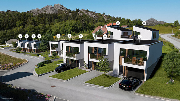 Fantastiske eneboliger, høyt og fritt beliggende med nydelig utsikt og sol fra tidlig morgen til sen kveld!