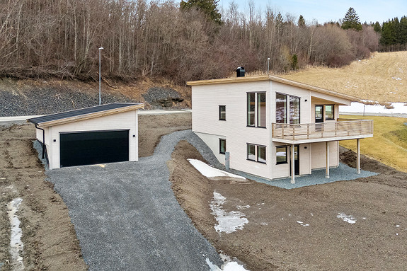 Helt ny, frittliggende enebolig over 2 plan i fredfull blindgate med nydelig utsikt og sen kveldssol. Flytt rett inn!