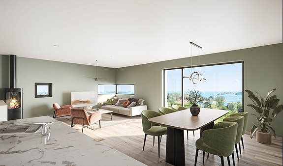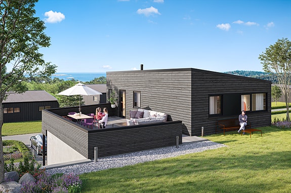 Flott enebolig på ett plan, sørvendt med sjøutsikt, Mesterhus type STRAND