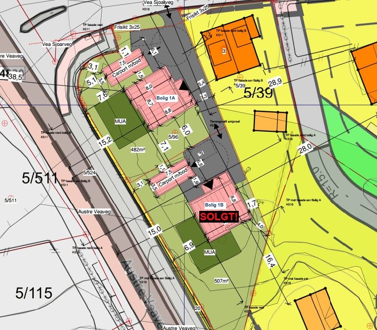Hver tomt vil være ca. 450-500 kvm og vil bli endelig fastsatt ved oppmåling av kommunen. Mindre avvik på tomtestørrelse kan forekomme og vil ikke gi grunnlag for prisavslag eller kompensasjon.