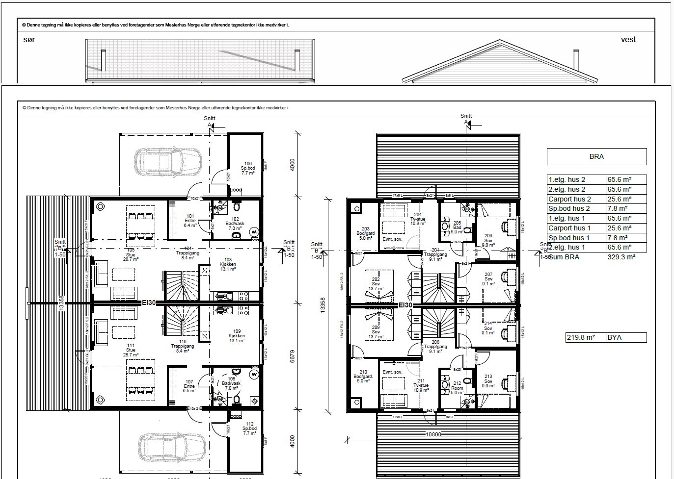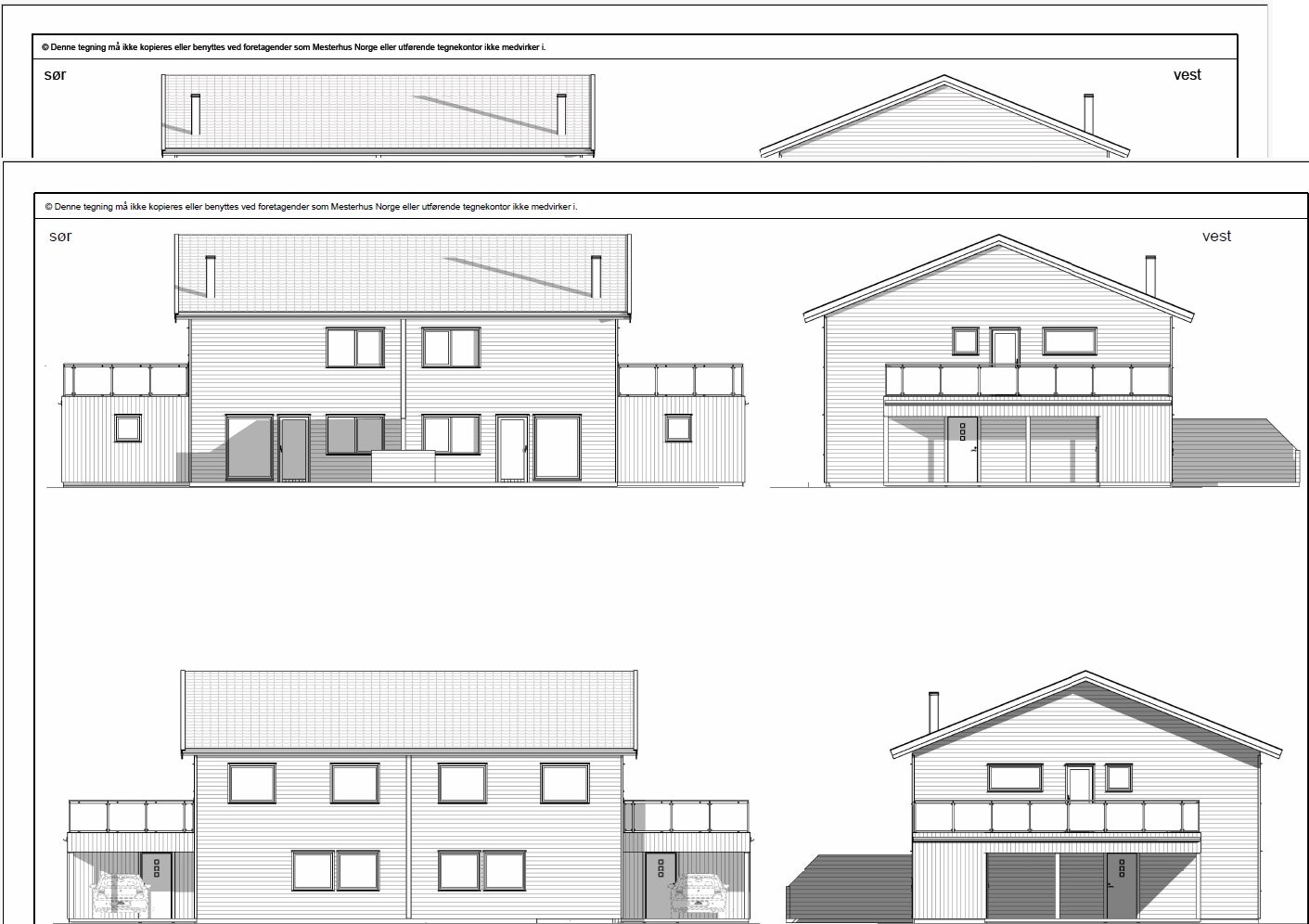 Kledning: Boligene leveres grunnet og ferdig malt. Liggende panel i farge 0734 Brunsvart og stående panel i farge S 3020-G90Y.