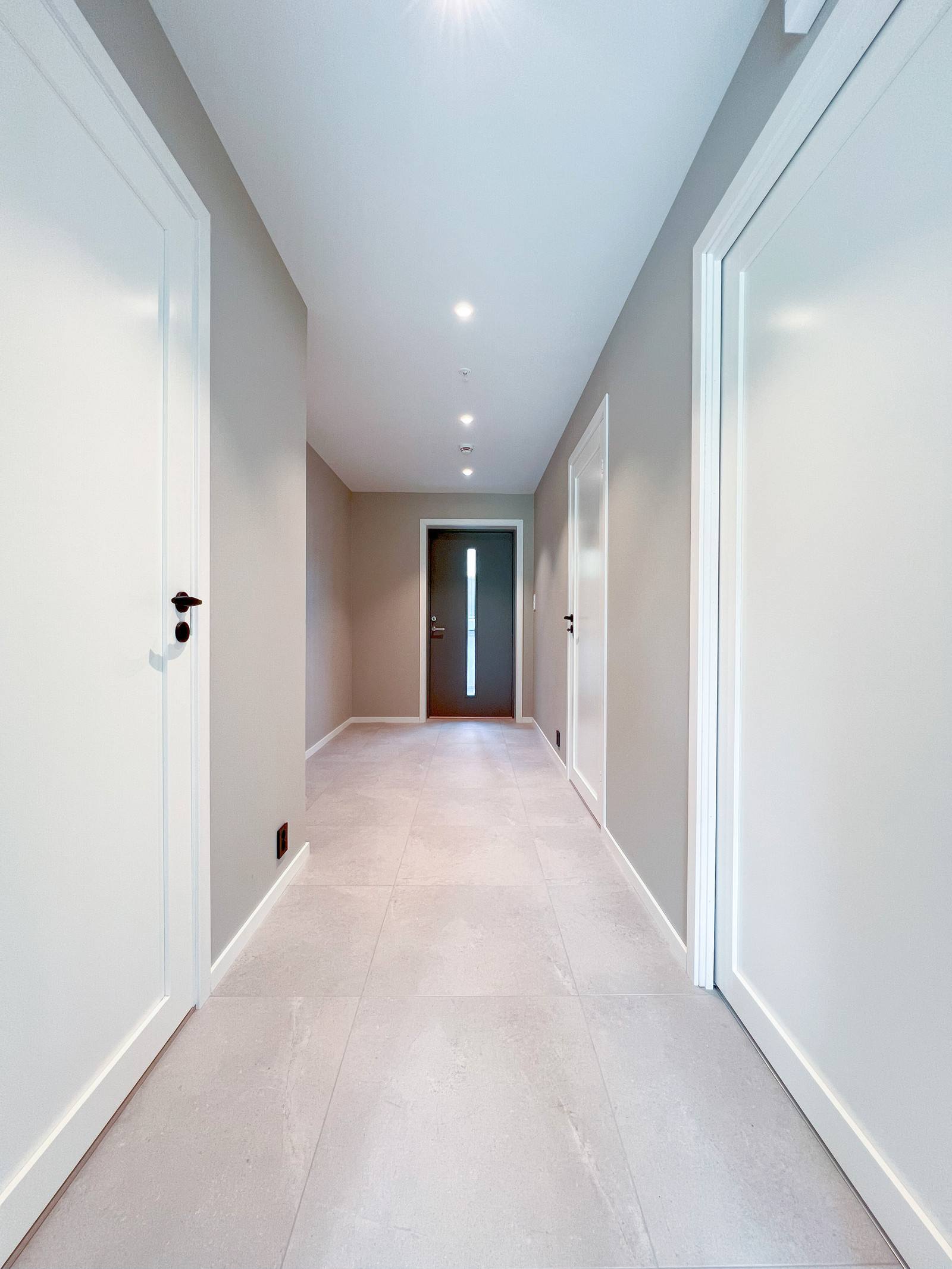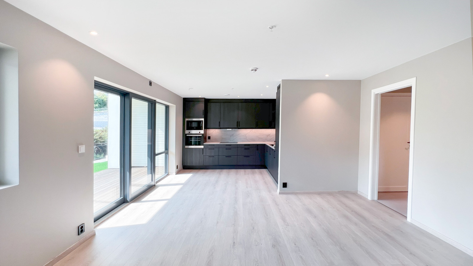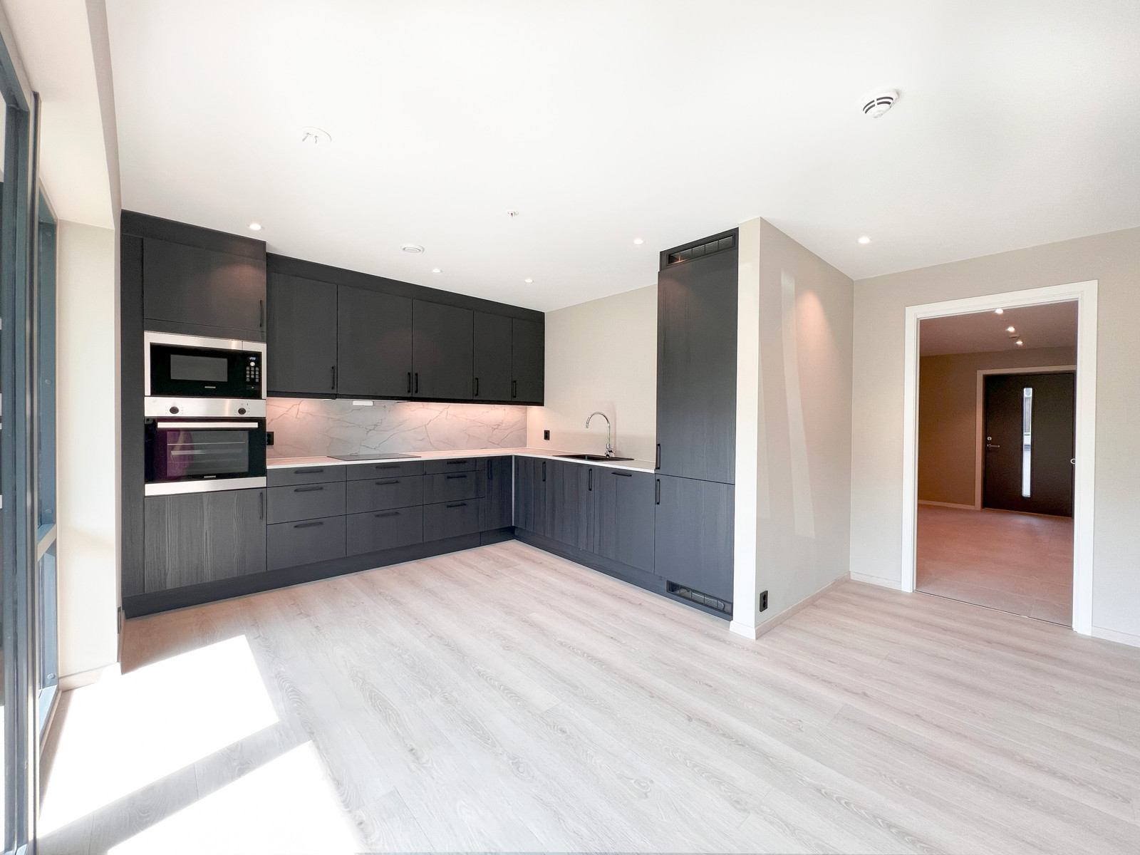 Himling på kjøkken, stove og entre vert levert med sparkla og målte gipsplater, med listefri utføring mellom vegg og tak.