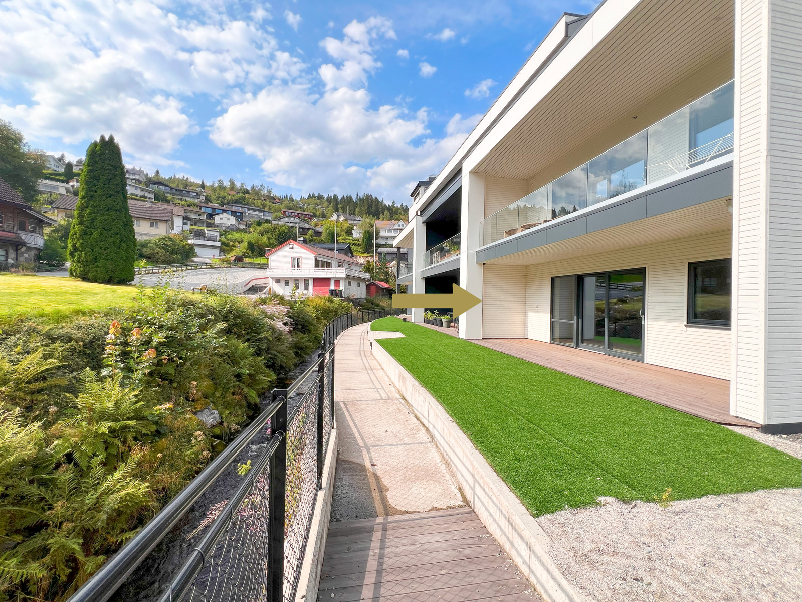 Tomta ligg strategisk til og har sol omtrent heile året. Leilegheita har stor terrasse der ein kan nyte mykje ettermiddags- og kveldssol. I tillegg til eigen terrasse har du moglegheit til å bruke dei flotte fellesområdene som er på tomta.