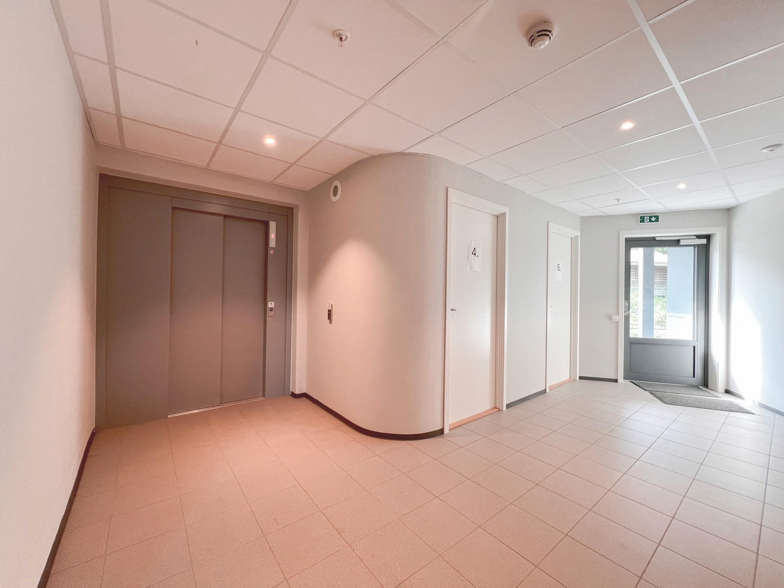 Det er felles trappe hus med heis i bygget.