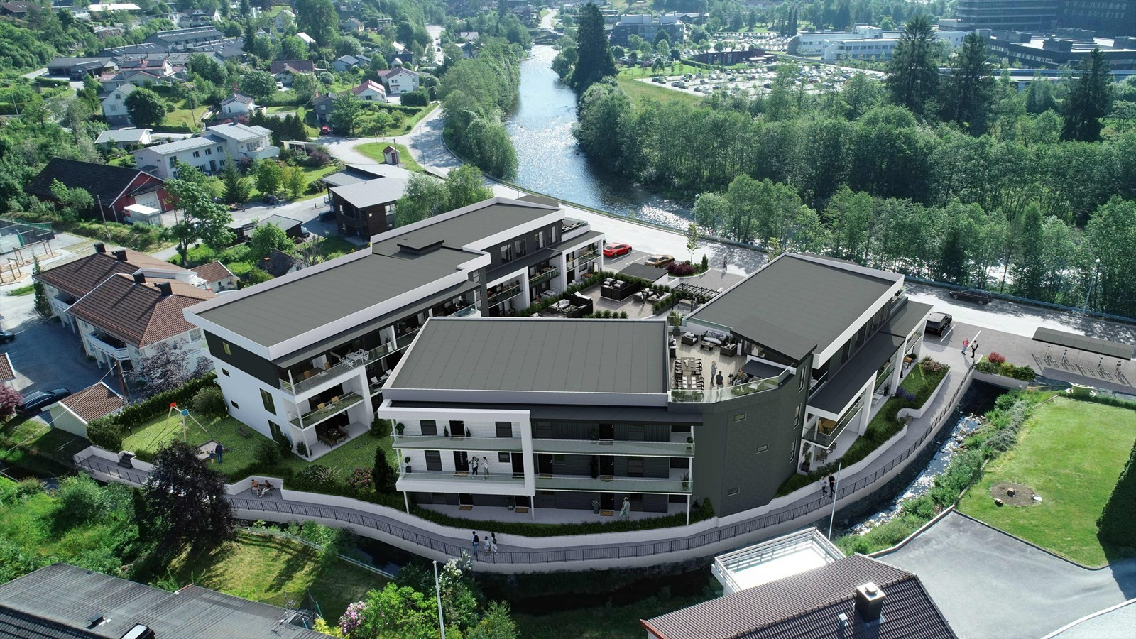- Stor felles takterasse med panoramautsikt