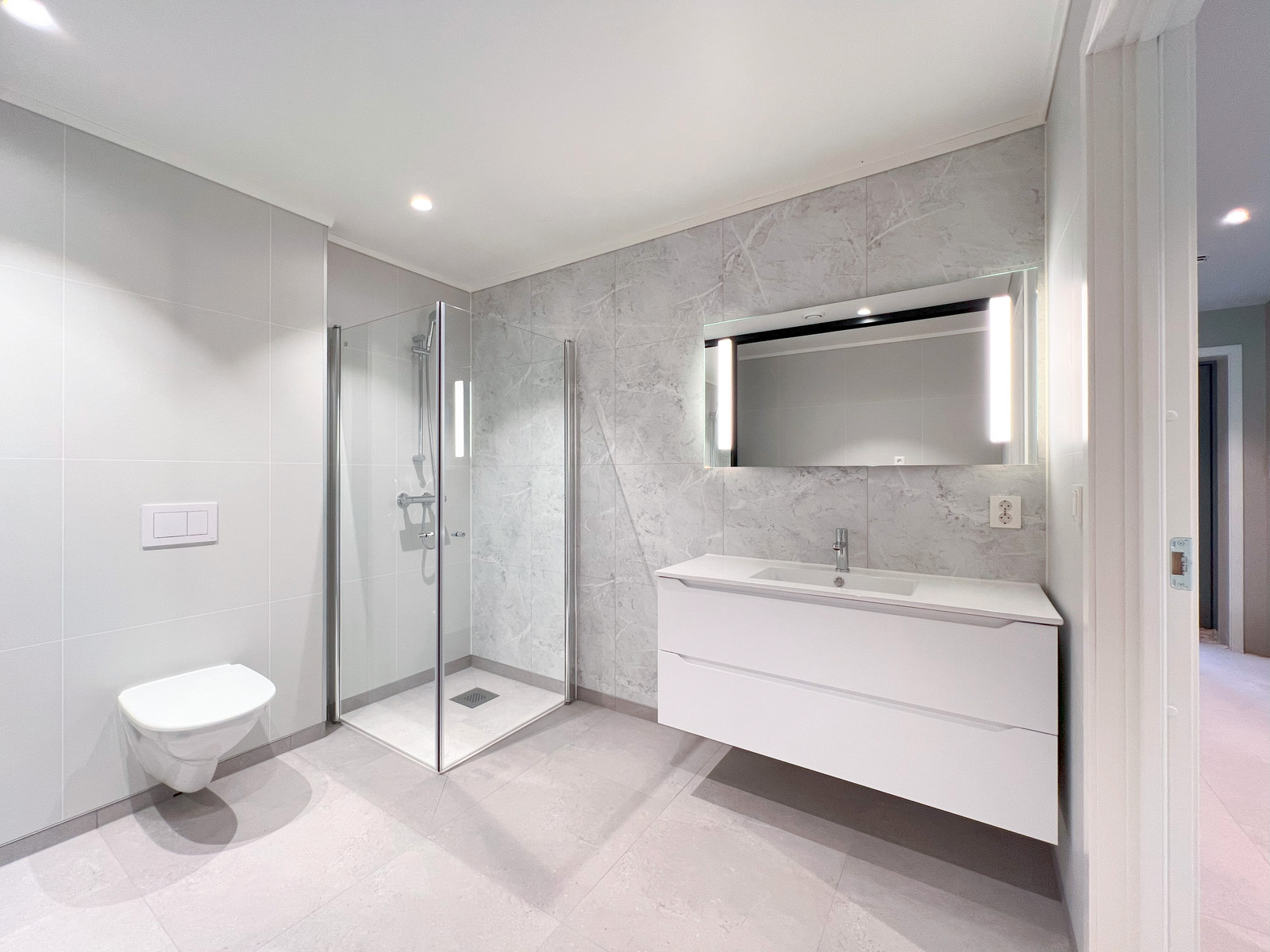 Bad og vaskerom utstyrt med elektrisk golvvarme, som sikrar forbrukaren behageleg og rask varme på badegolvet.