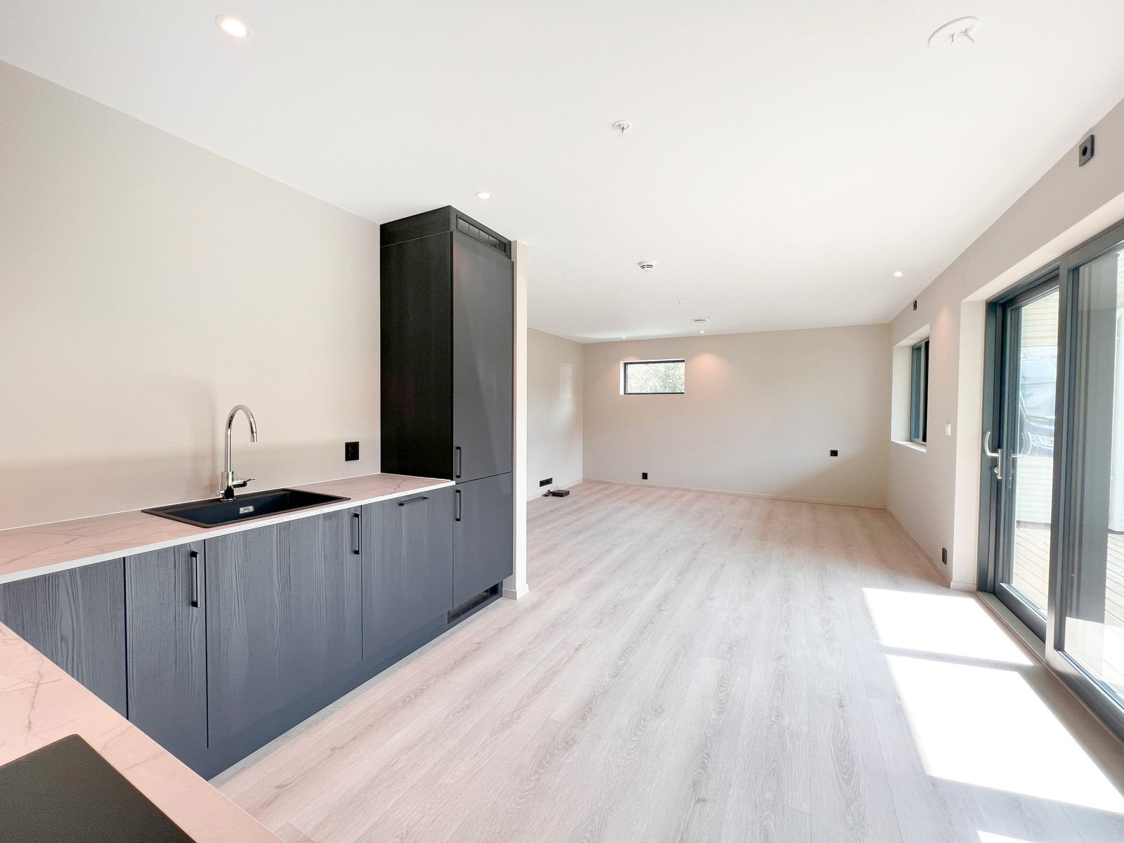 I leilegheitene blir det levert golv frå Berry Alloc, i serien Ocean Bloom Sand Natural – med breie 1-stavs golvbord.