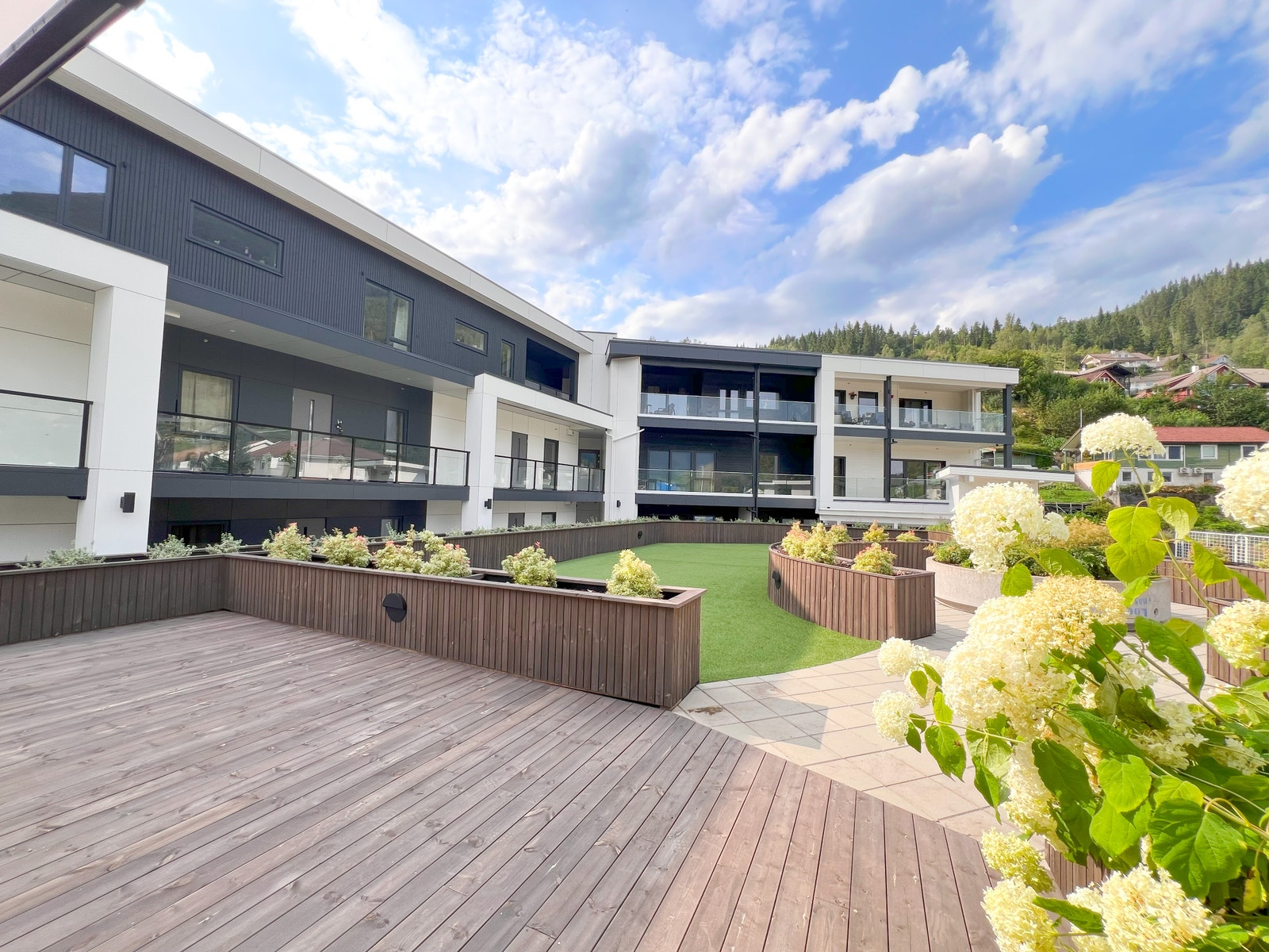 I tillegg til eigen balkong har du moglegheit til å bruke dei flotte fellesområdene som er på tomta. Med på kjøpet får du ein felles takterrasse, to gjesteleilegheiter dersom ein skulle trenge fleire sengeplassar, samt Oskars Hage - med sine mange lune og skjerma område, kan du vere sikker på å nyte sommardagen ute.
