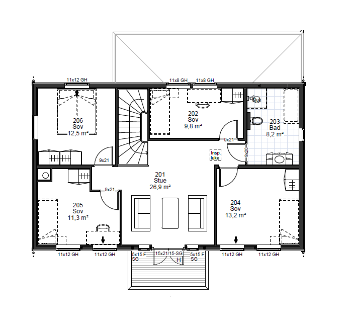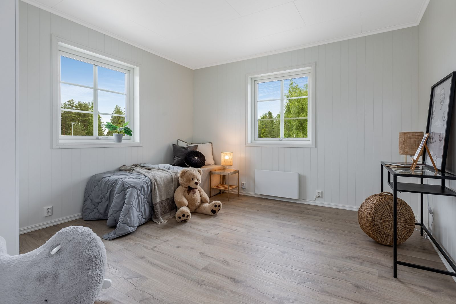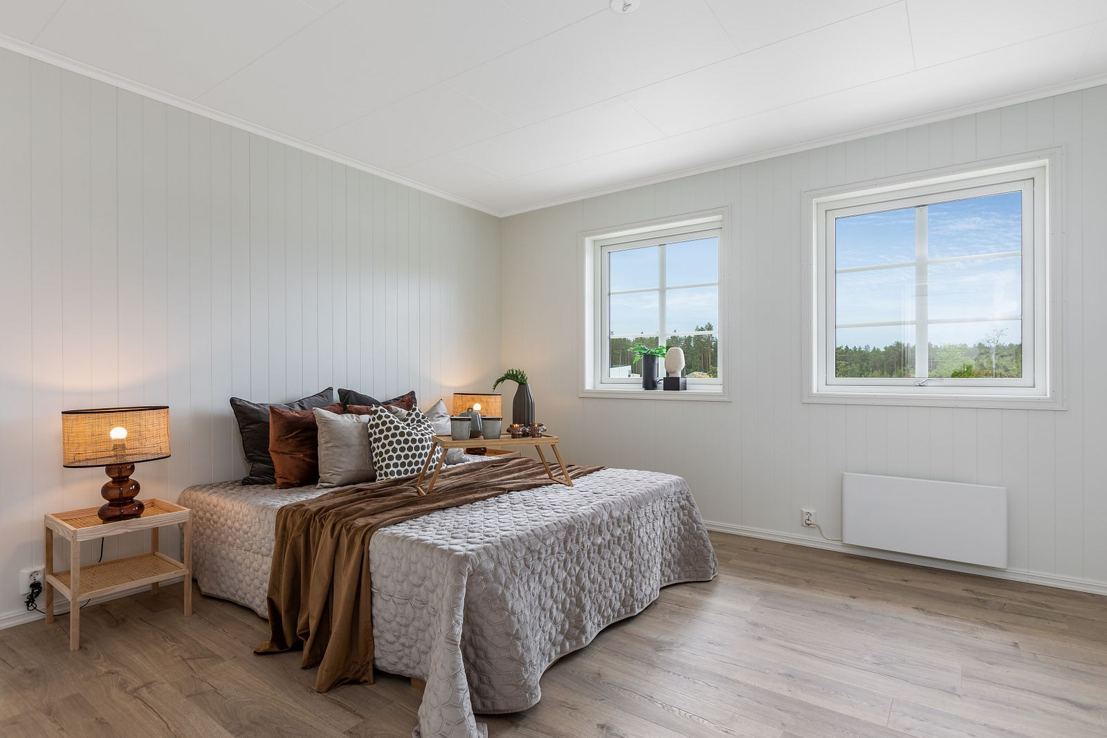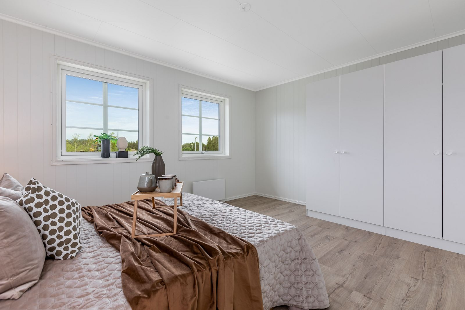 Fire gode soverom, alle med frittstående garderobeskap. Termostatovner med nattsenkefunksjon monteres i alle soverommene.