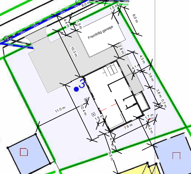Det er avsatt plass til dobbelgarasje og det er lagt trekkerør for strøm ut til garasje. Kjøper må selv søke kommunen og bekoste ønsket garasje. Biloppstillingsplasser på egen tomt.