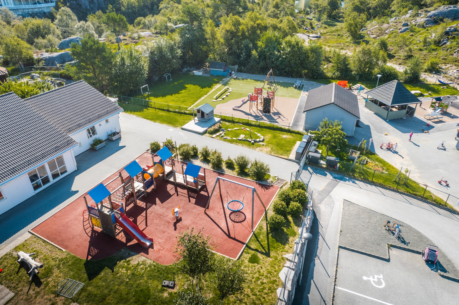 Det er opparbeidet gangsti og fortau ned til Hålå Idrettsanlegg, Eigerøy skole og de to barnehagene som ligger ved siden av skolen. Så her kan barna gå trygt til både skole og fritidsaktiviteter!