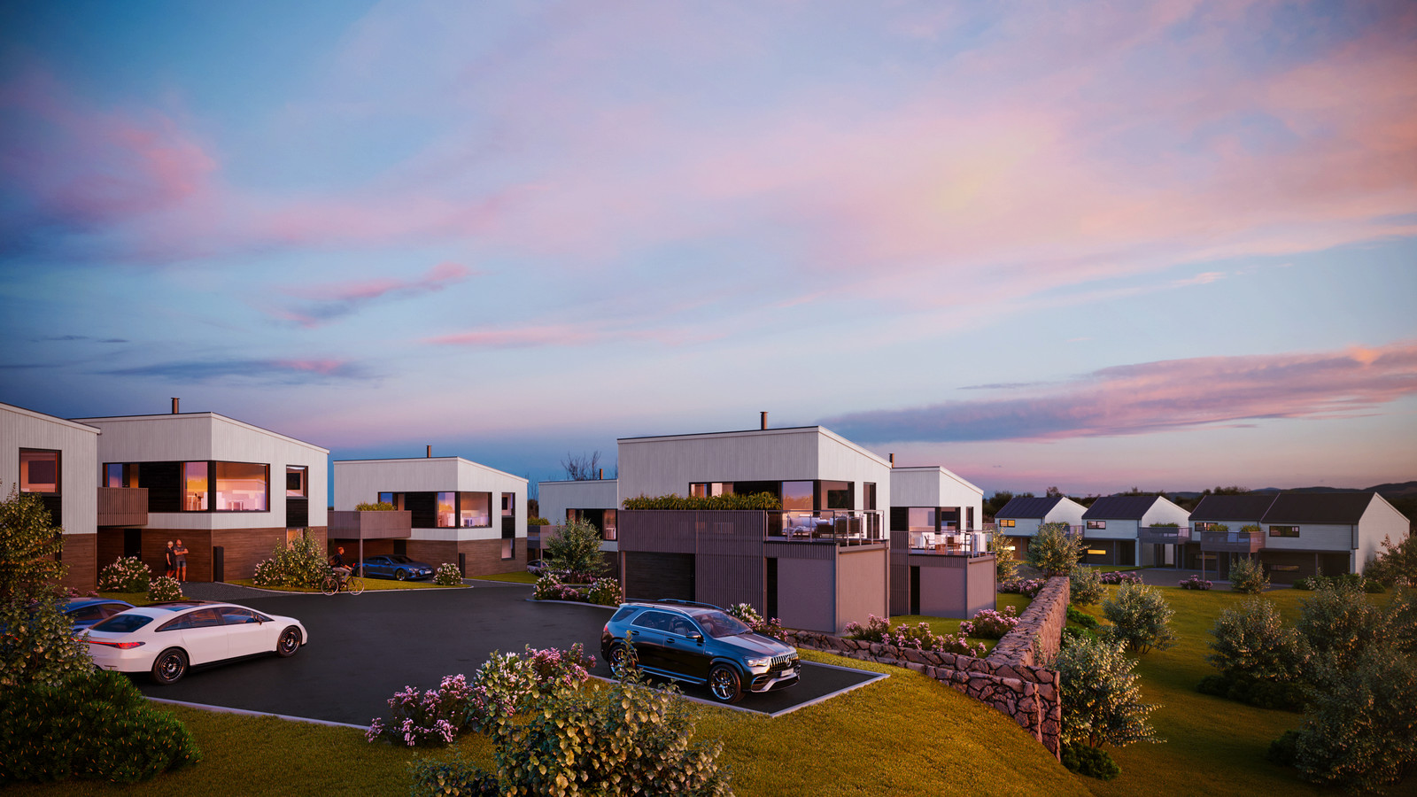 På tomt 11, 12 og 13 skal vi bygge familievennlige eneboliger i rekke som går over 2 etasjer. Boligene har praktiske og smarte planløsninger