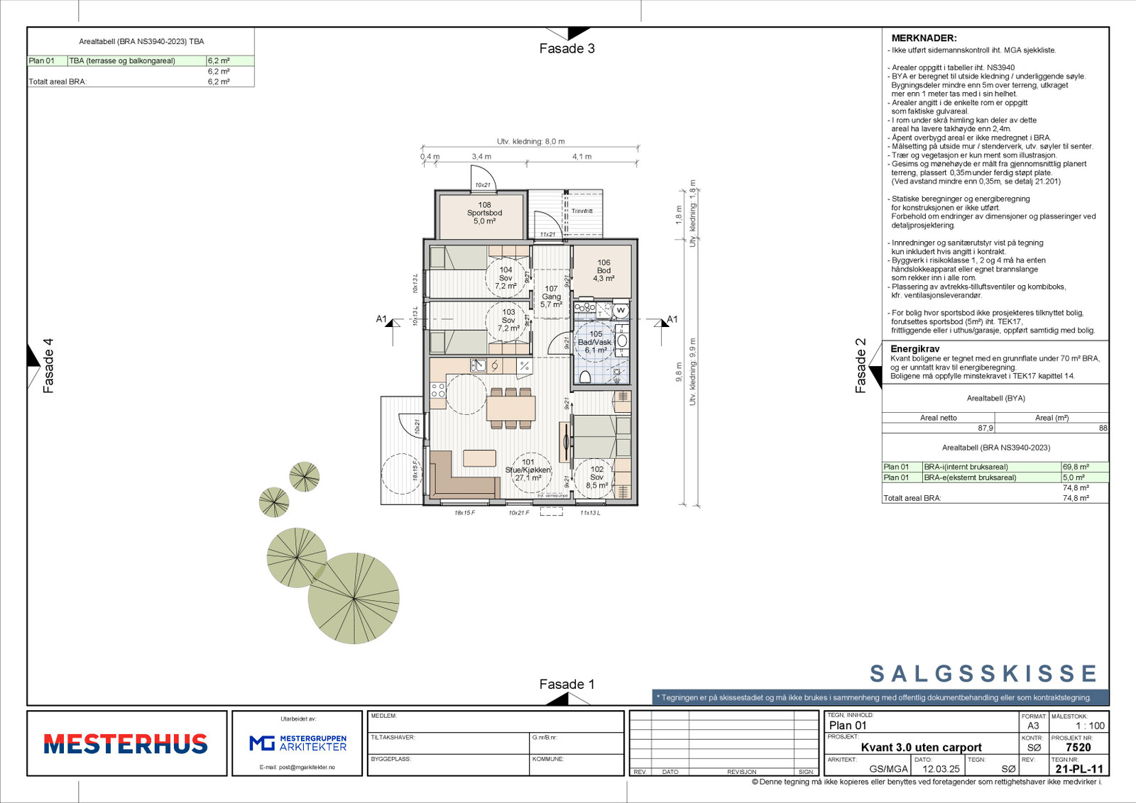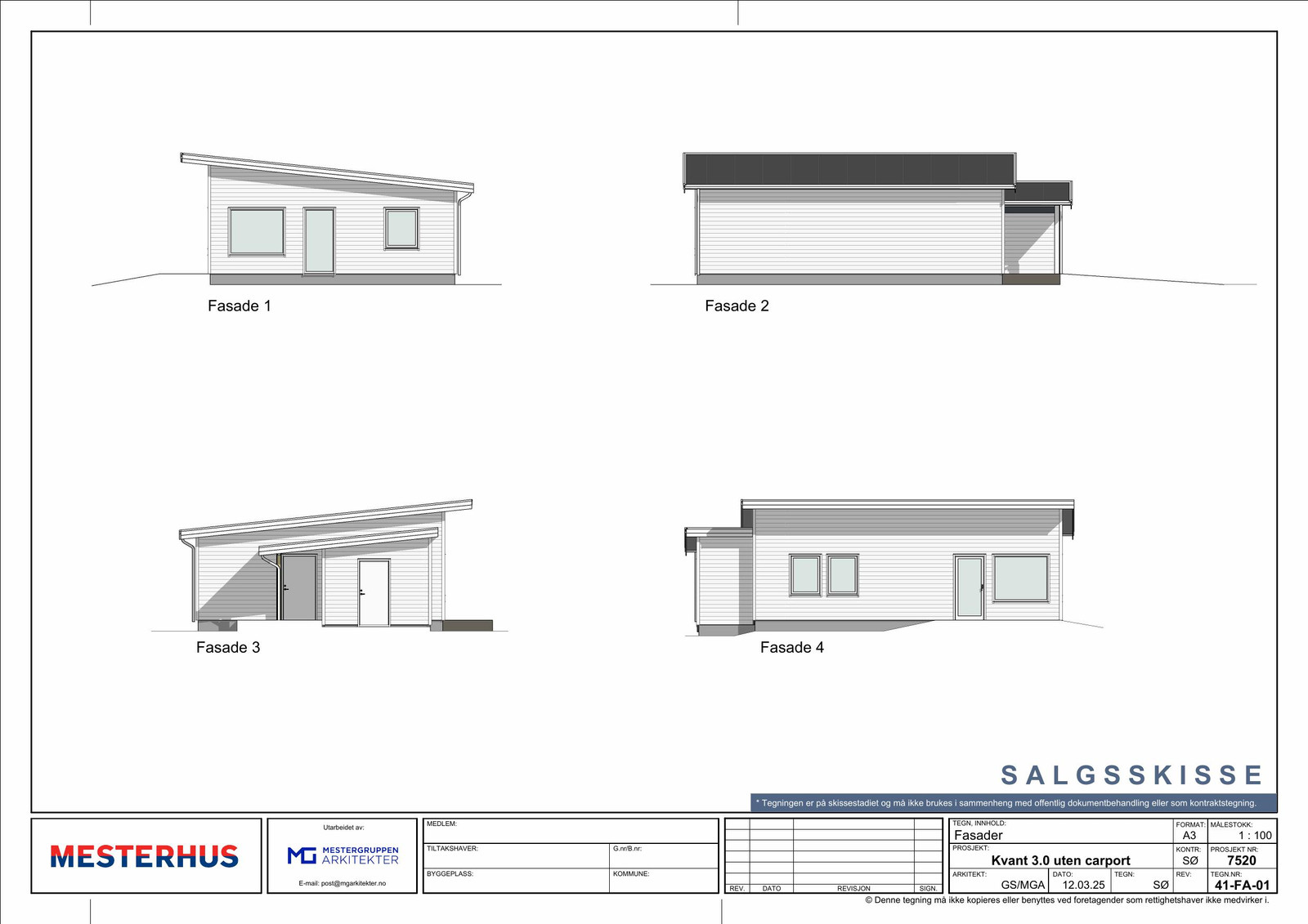 Dette prospektet er ment som en orientering om byggeprosjektet og er ikke bindende for den detaljerte utformingen av bebyggelsen. Alle opplysninger er derfor gitt med forbehold om at utbygger kan foreta mindre endringer hvis dette skulle vise seg nødvendig eller ønskelig. Illustrasjoner og plantegninger som er benyttet i prospektet kan avvike fra virkelig bygg. Tomten er fradelt og endelig tomtestørrelse kan avvike ift illustrasjoner. 1:100-tegninger og prosjektets beskrivelse går foran dette prospektet der det måtte være avvik.