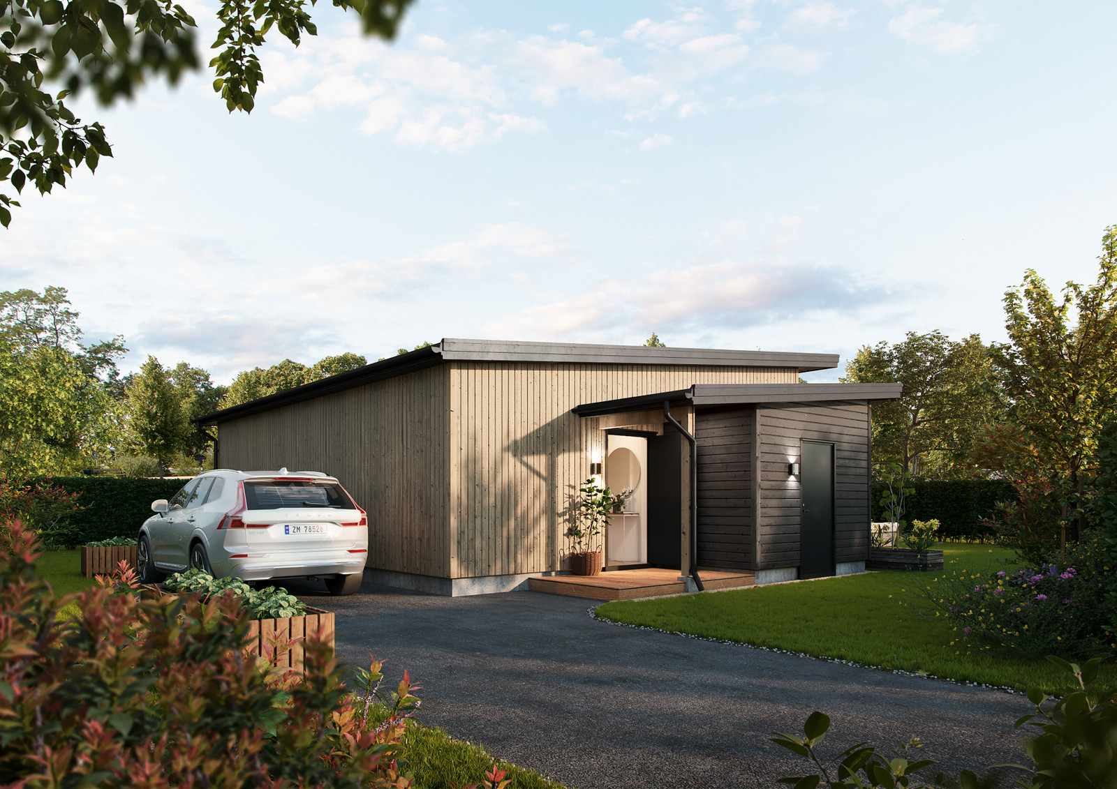 KVANT 3.0 carporten kan enkelt integreres med boligen, og gir både skjerming og ekstra lagringsplass.
