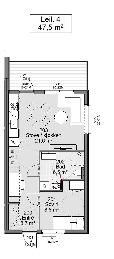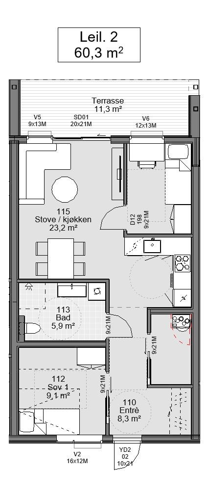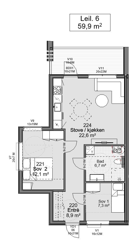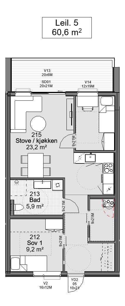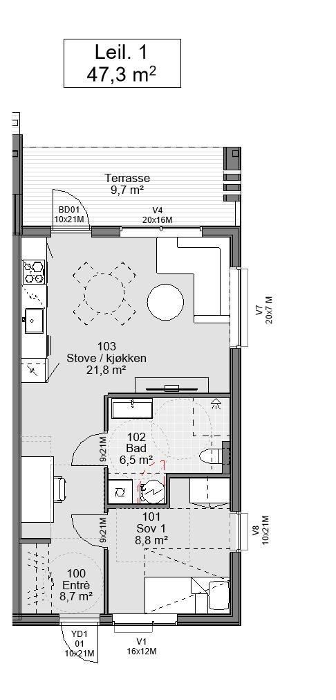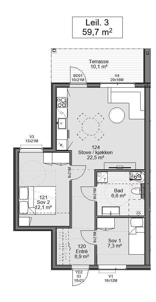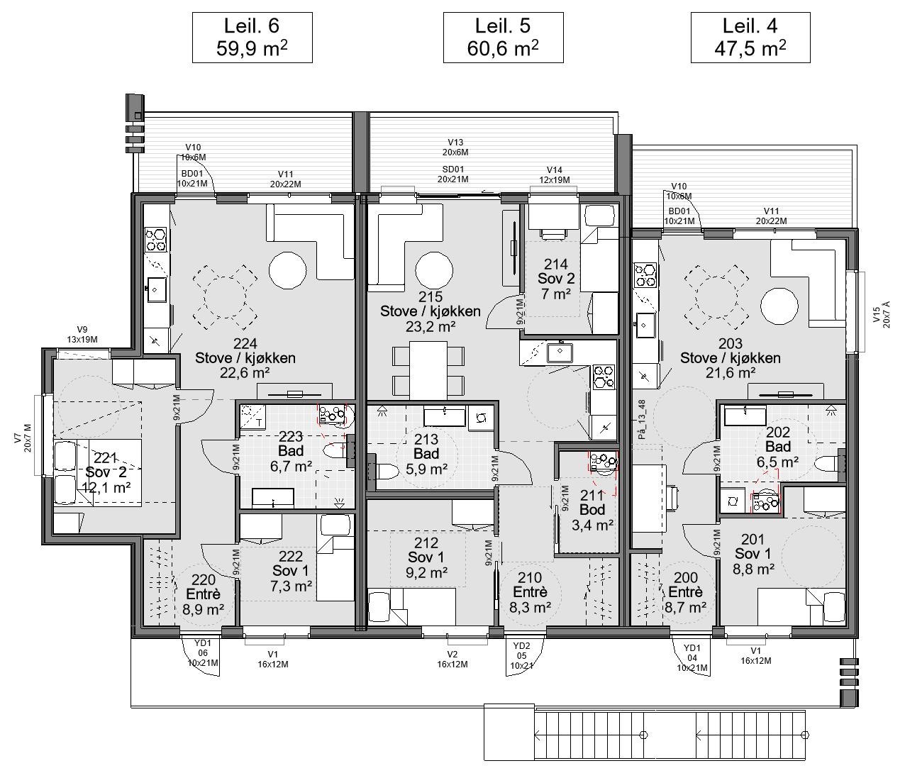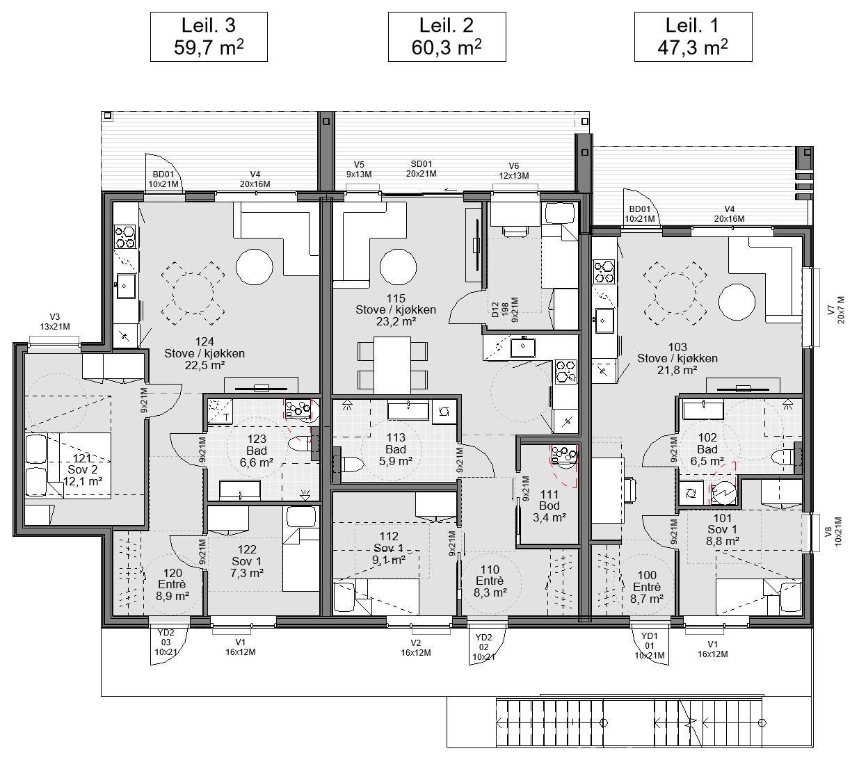 - Alle leilegheitene får også med kvar sin sportsbod på ca. 5 m2.