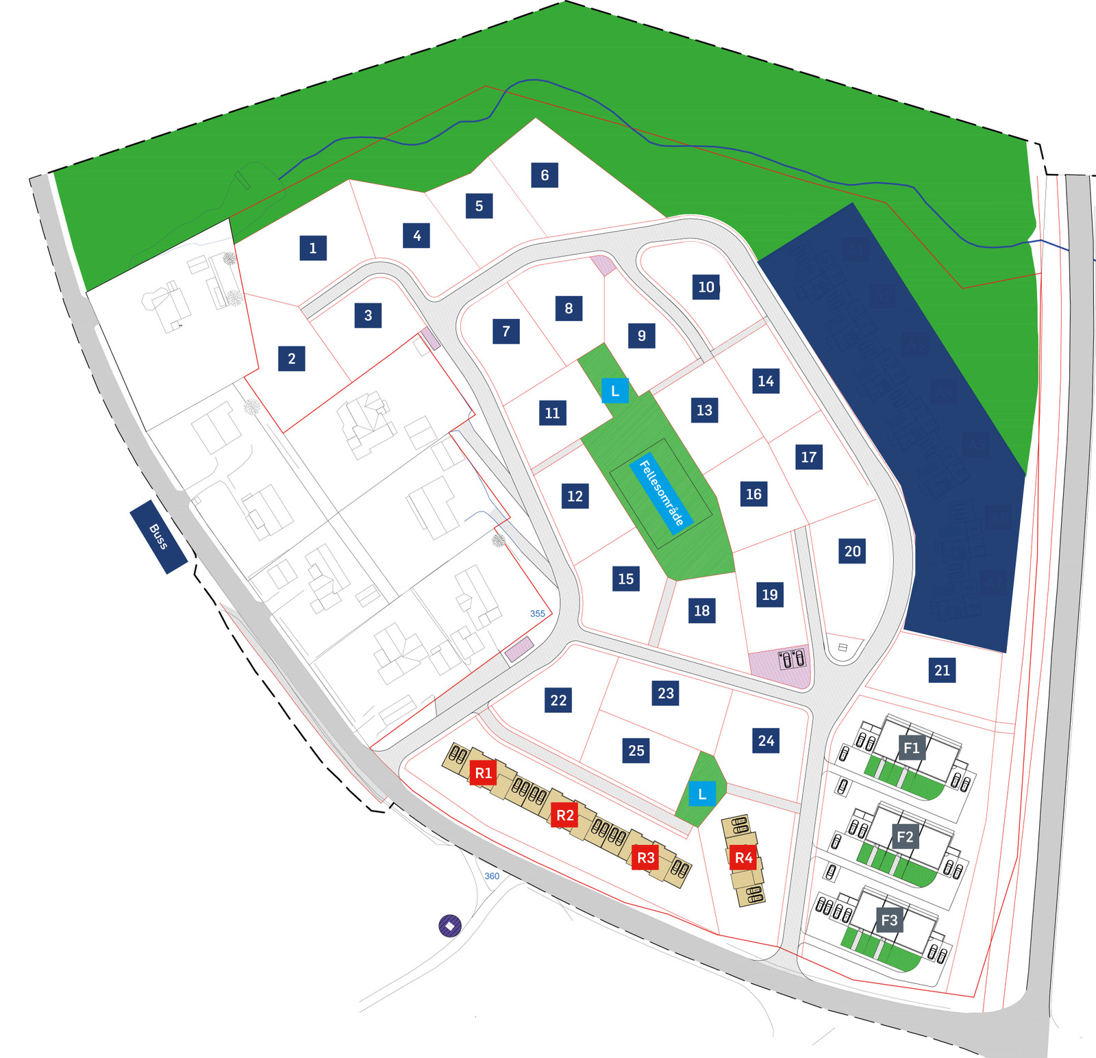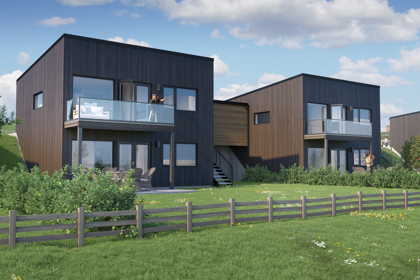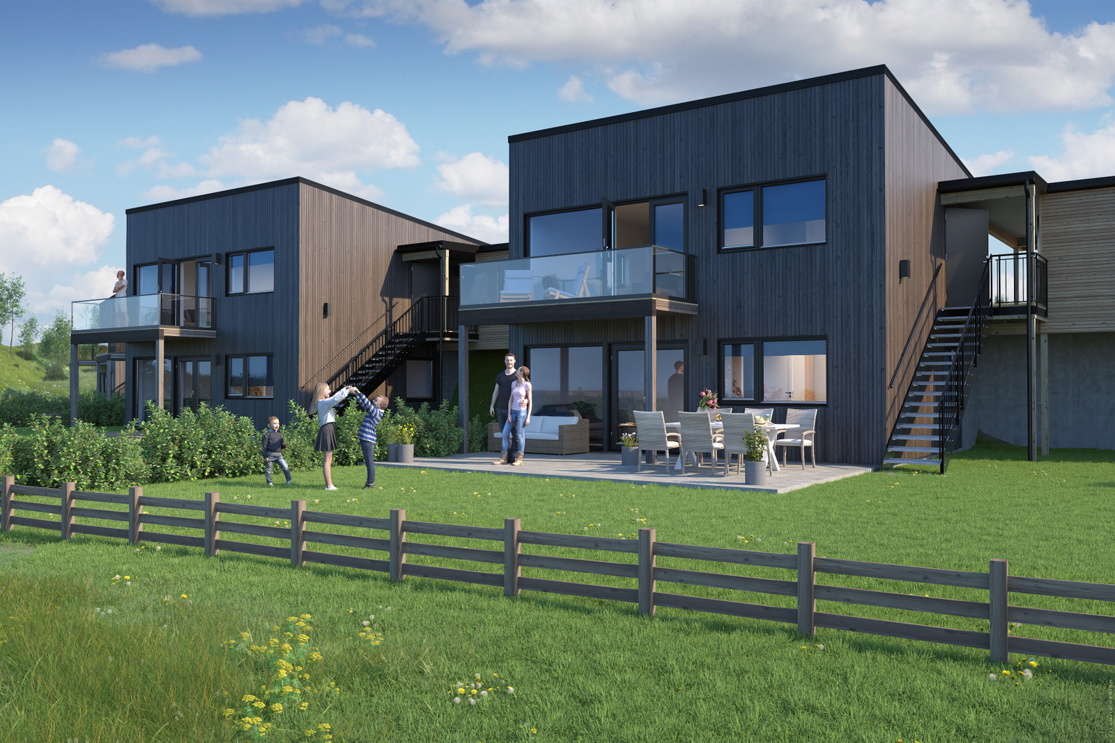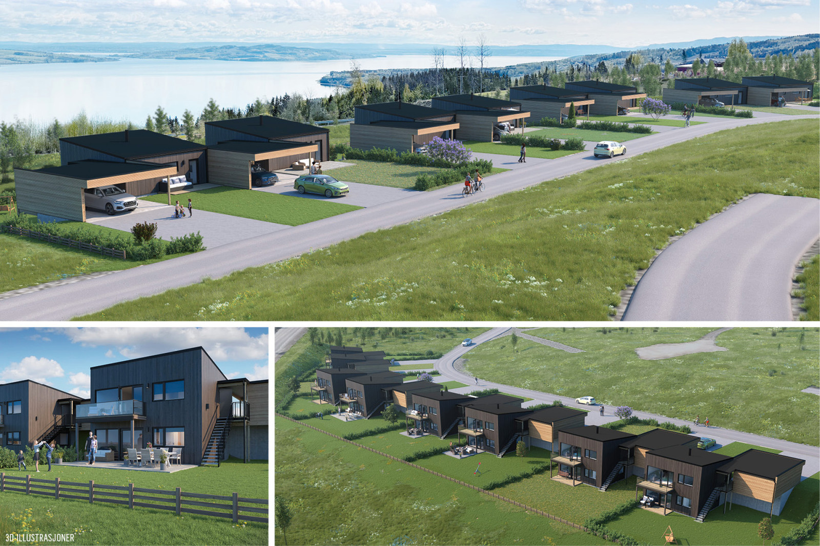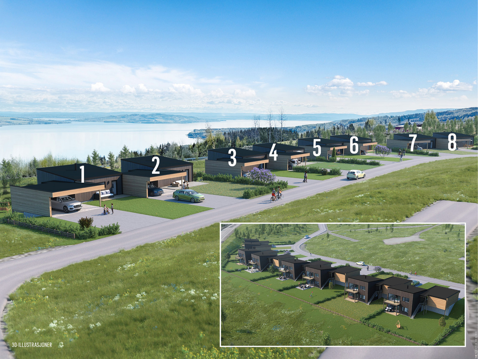 Nederst på feltet har vi planlagt 8 flotte eneboliger i kjede - for alle livets faser, og nå lanserer vi de første!