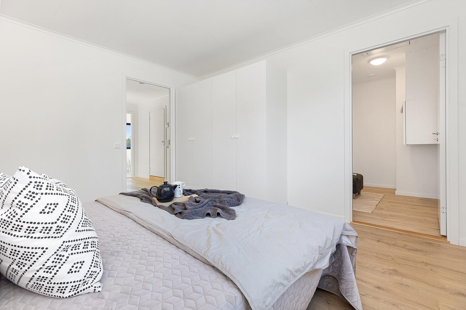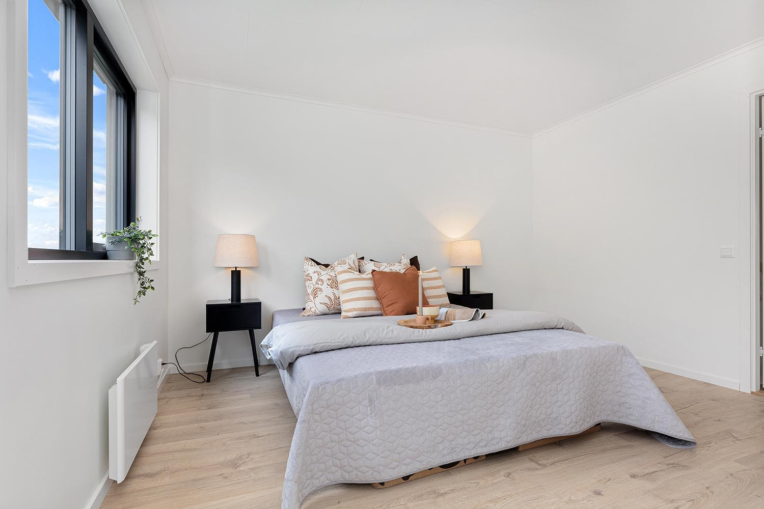 Soverom: Stort og behagelig hovedsoverom med dobbelt, frittstående garderobeskap og bod. Termostatovn med nattsenkefunksjon.