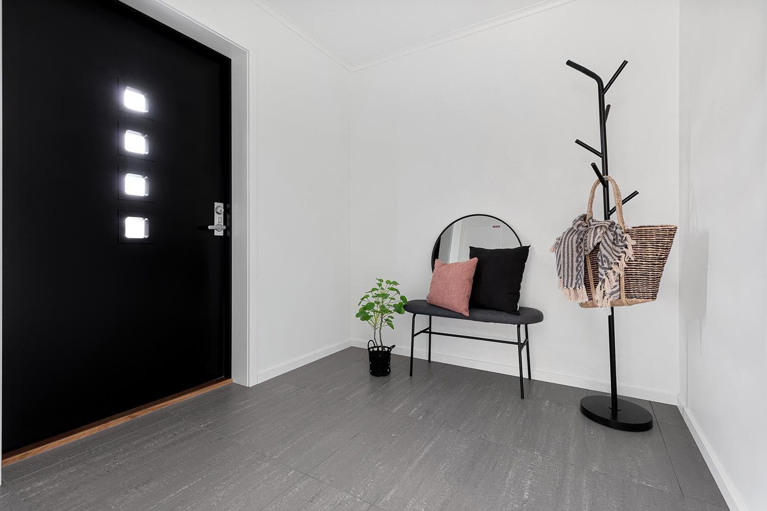 Gulvflater: Storhaug 1-stavs eikeparkett i alle rom, bortsett fra Entré som har Antica 30x60 black matt flis på gulv og begge våtrommene som har Antica 20x20 black matt flis med 10x10 mosaikkflis i nedsenk dusjnisje.