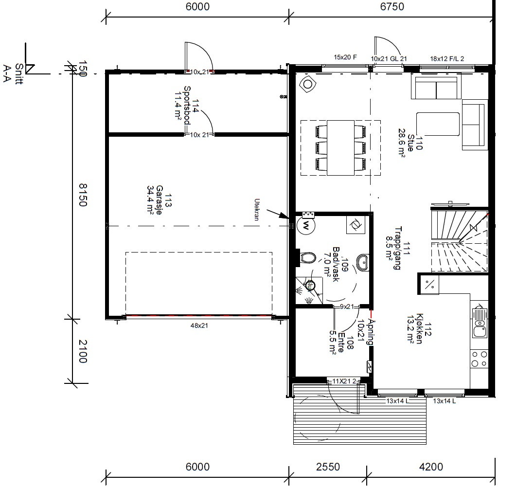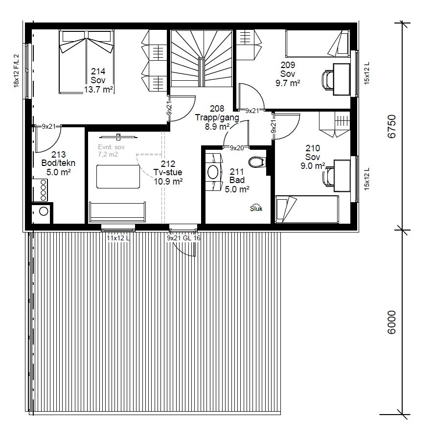 Tv-Stue: Praktisk tv-stue som enkelt kan gjøres om til et ekstra soverom dersom man har behov for det. Tv-stuen har direkte utgang til en fantastisk terrasse på ca. 46 kvm. Terrassen har tett vegg mot gårdsplass og glassrekkverk mot hage. Et skjermet og flott sted man kan kose seg med hele familien.