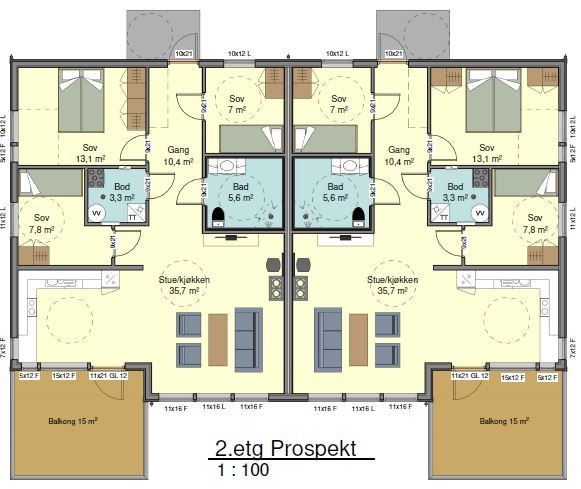 - Alle innvendige og utvendige areal, samt beskriving av bygning er henta frå bygningsteikningar.