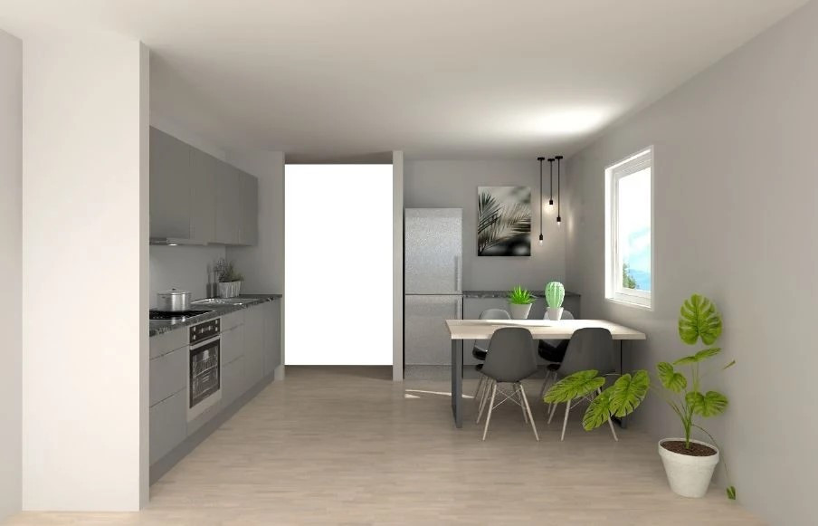 •Opphaldsrom, open stove og kjøkkenløysing