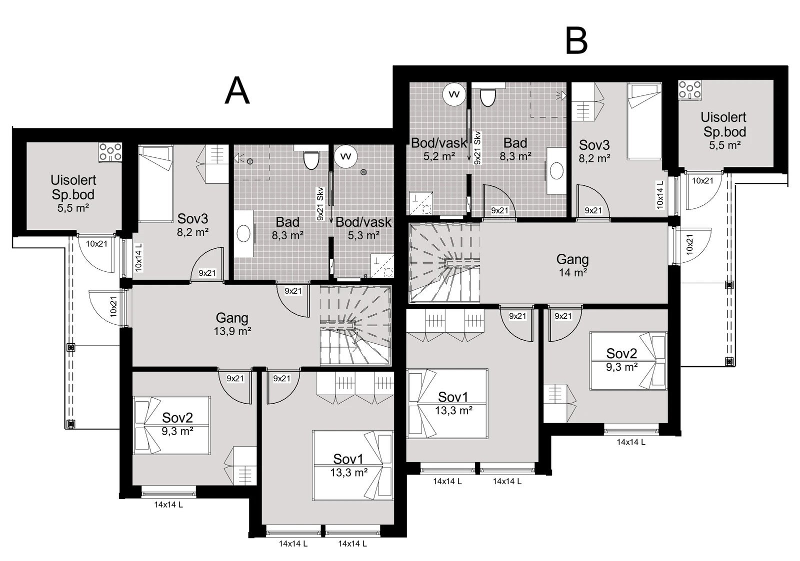 Fire soverom eller to stover – valet er ditt. Her får du heile 123 m², med blant anna to bad, eget vaskerom, fire soverom, og ei open stove/kjøkkenløysing som gir deg moglegheit til å vere sosial, sjølv når du briljerer på kjøkkenet. Dette er ein gjennomtenkt heim med praktiske løysingar som er tilpassa det gode liv. Eininga har ei bod for oppbevaring innvendig. I tilegg følgjer det med ei sportsbod utvendig. Sportsboda vil ligge ved inngangsdøra, der vi held fram med den praktiske byggeskikken med eit overbygd inngangsparti som er tilpassa det Vestlandske klimaet.