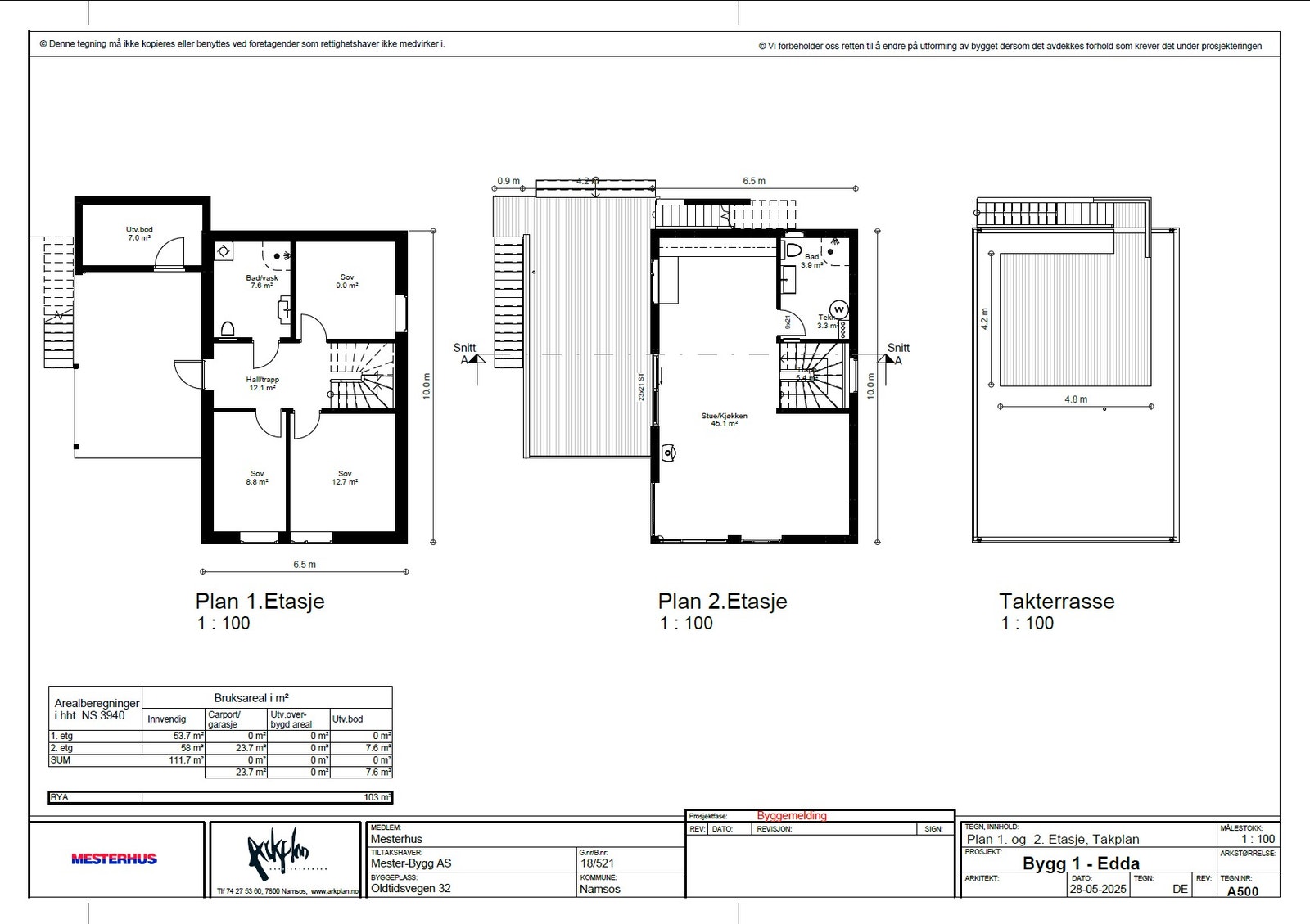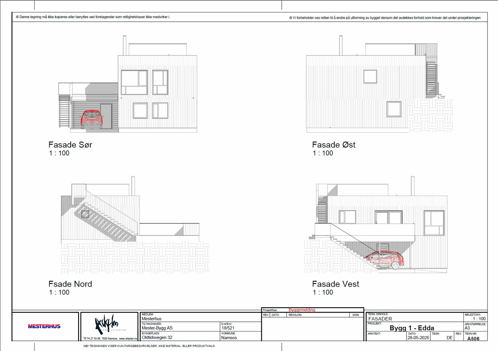 Sammen med kontrakten følger tegninger av alle planer, snitt og fasader på huset.