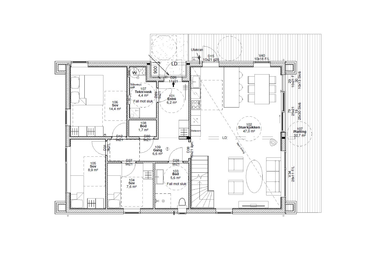 Prosjektert pris inkluderer ikke behandlingsgebyr for byggesøknad, tilknytningsgebyr for vann/avløp eller byggestrøm.