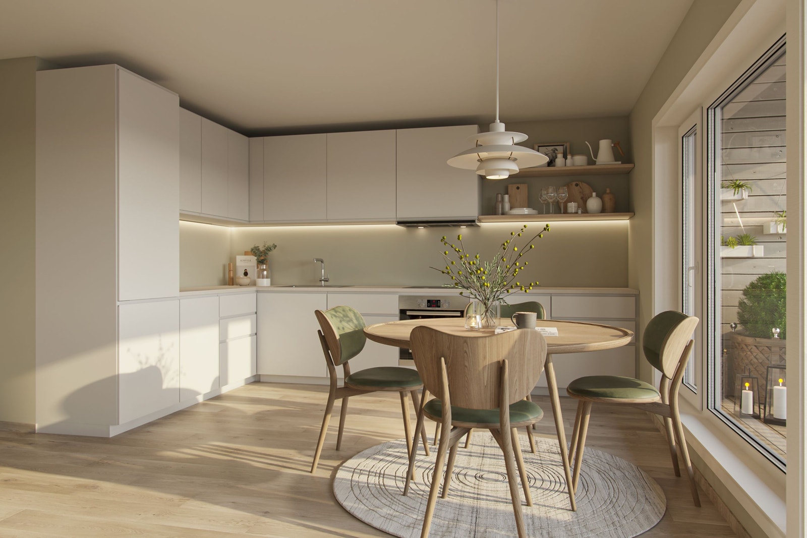 Materialer av førsteklasses kvalitet er brukt i byggingen, inkludert holdbare og bærekraftige alternativer som sikrer langvarig kvalitet. Fra robuste og energieffektive vegger til moderne vinduer som slipper inn naturlig lys, er bygningene utformet for å gi beboerne en komfortabel og miljøvennlig opplevelse. Materialvalgene bidrar til å skape et elegant og moderne utseende, samtidig som de oppfyller de høye standardene for holdbarhet og kvalitet som er kjennetegnet for Mesterhusboliger.
