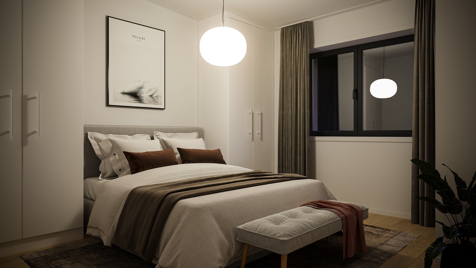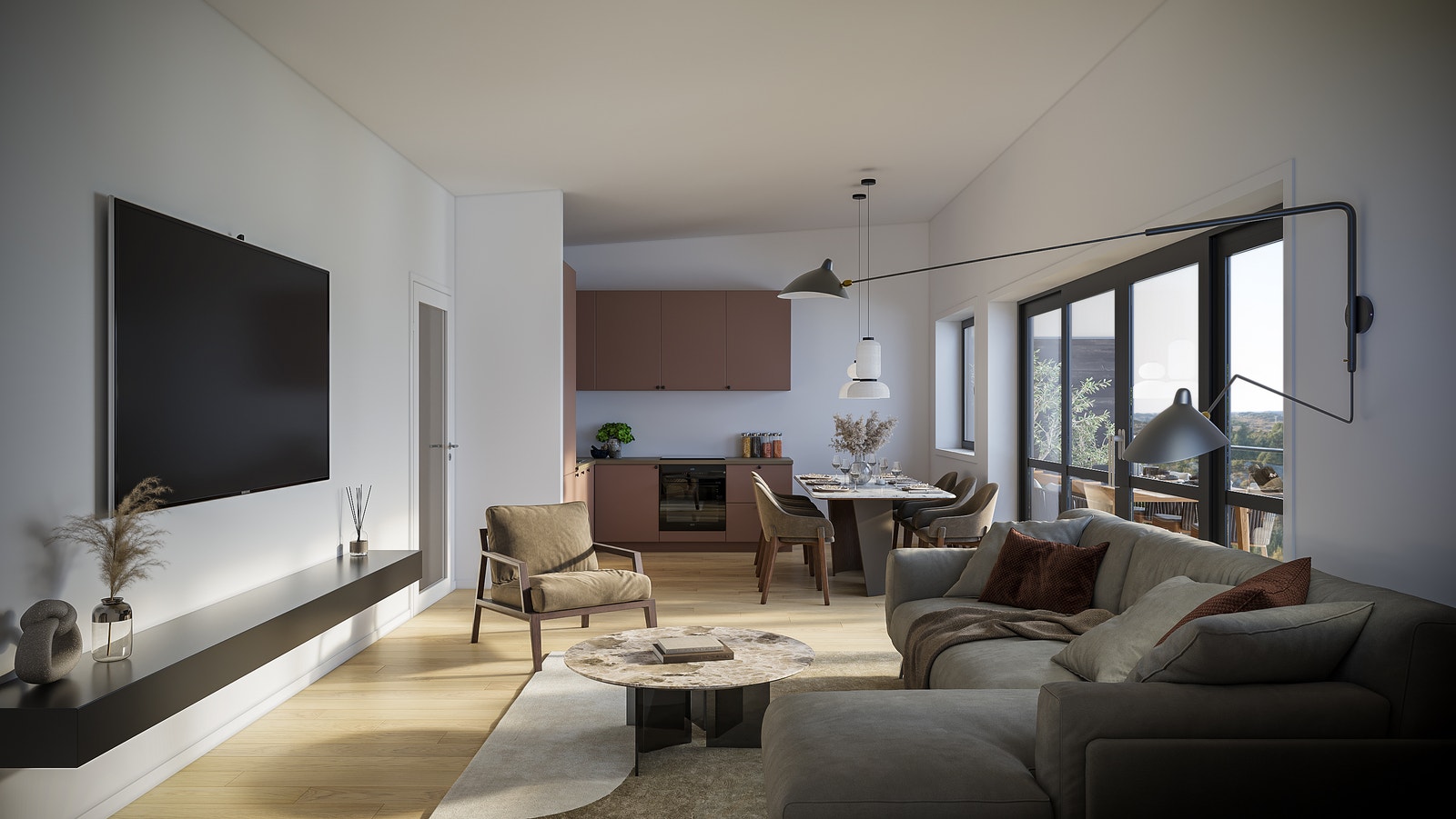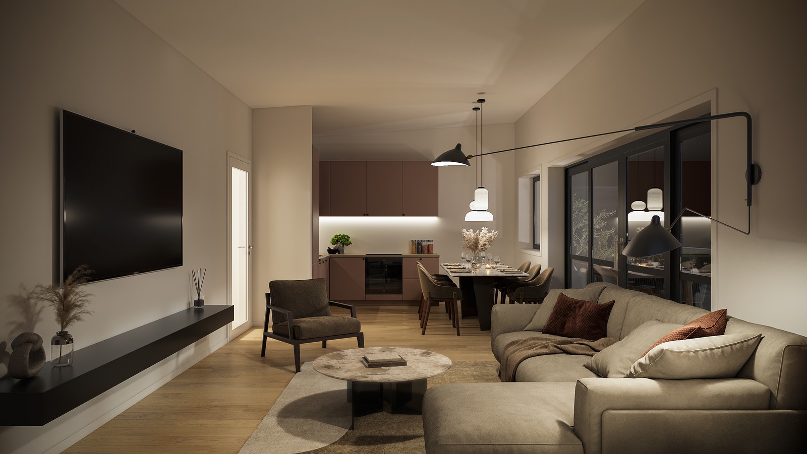 - Leilighetene får en romslig og åpen stue/kjøkkenløsning, med utgang til en trivelig vestvendt balkong. To soverom, bad og separat vaskerom/bod