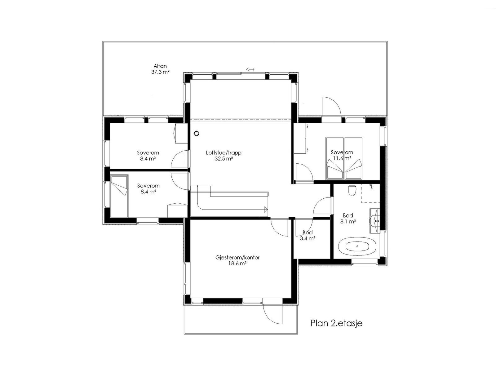 Videre opp i 2. etasje kommer man til en stor loftstue med flott utsikt og tilgang til en stor terrasse. I tilknytning loftstua er det 4 soverom hvor ett av soverommene har utgang til terrassen, og 1 har egen terrasse. Her kan man ha både soverom eller eget kontor etter hva man ønsker. I tillegg er det eget bad og en bod.