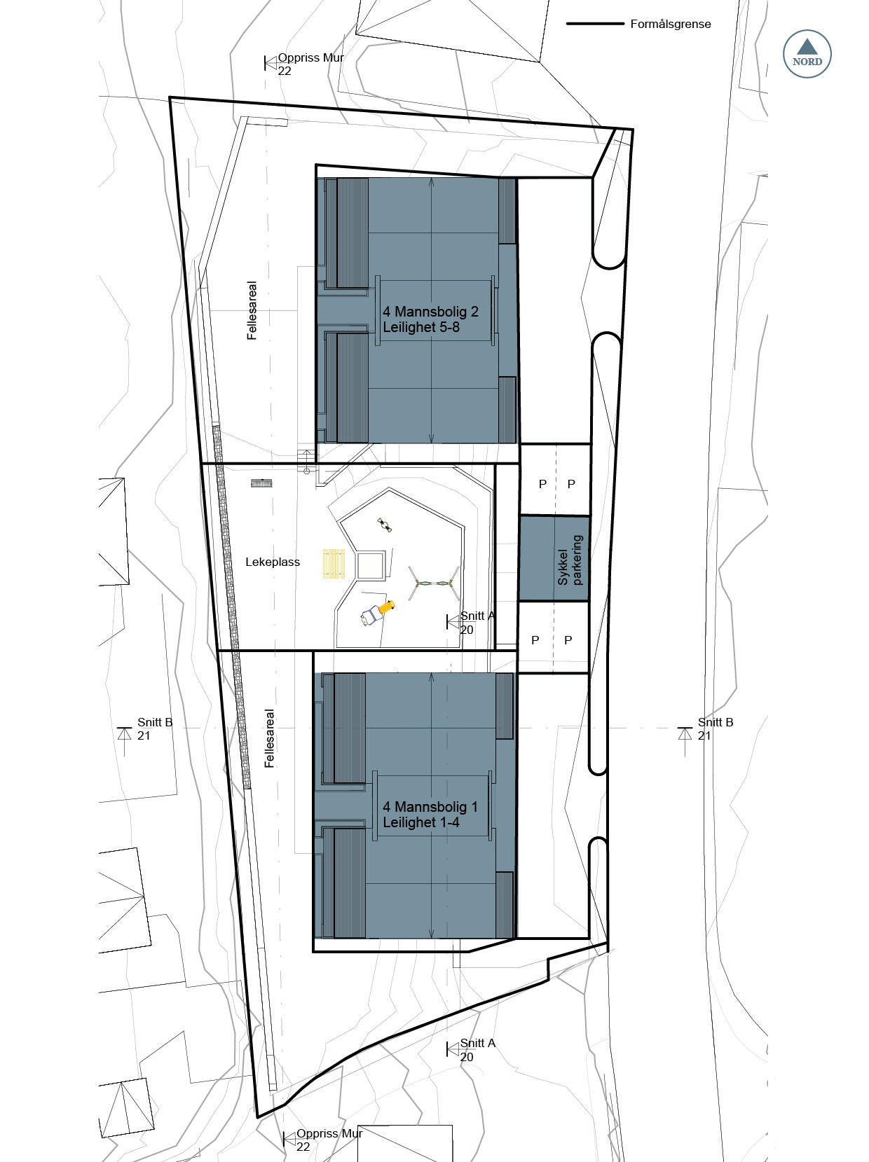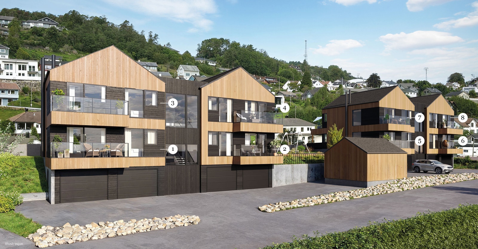 Gå til forhandlersidenI Gamle Sokndalsveien 11 skal vi bygge 8 leiligeter fordelt på to bygg. Byggene går over 3 etasjer med garasje inkl. bod i underetasjen.