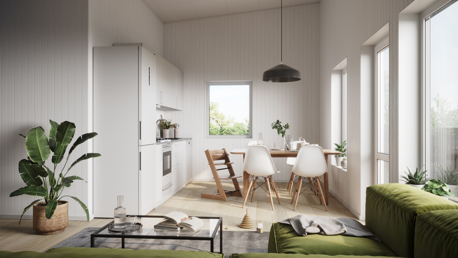 Alle leilighetene får en flott sørvendt fasade som sikrer optimale solforhold gjennom dagen. Her bor du med kort vei til alt du trenger i hverdagen, enten det er nærbutikken, barnehagen, lekeplassen eller de flotte turområdene rett utenfor døren.