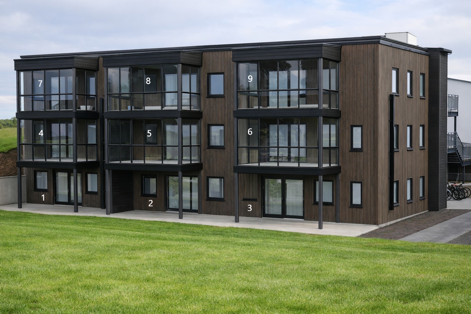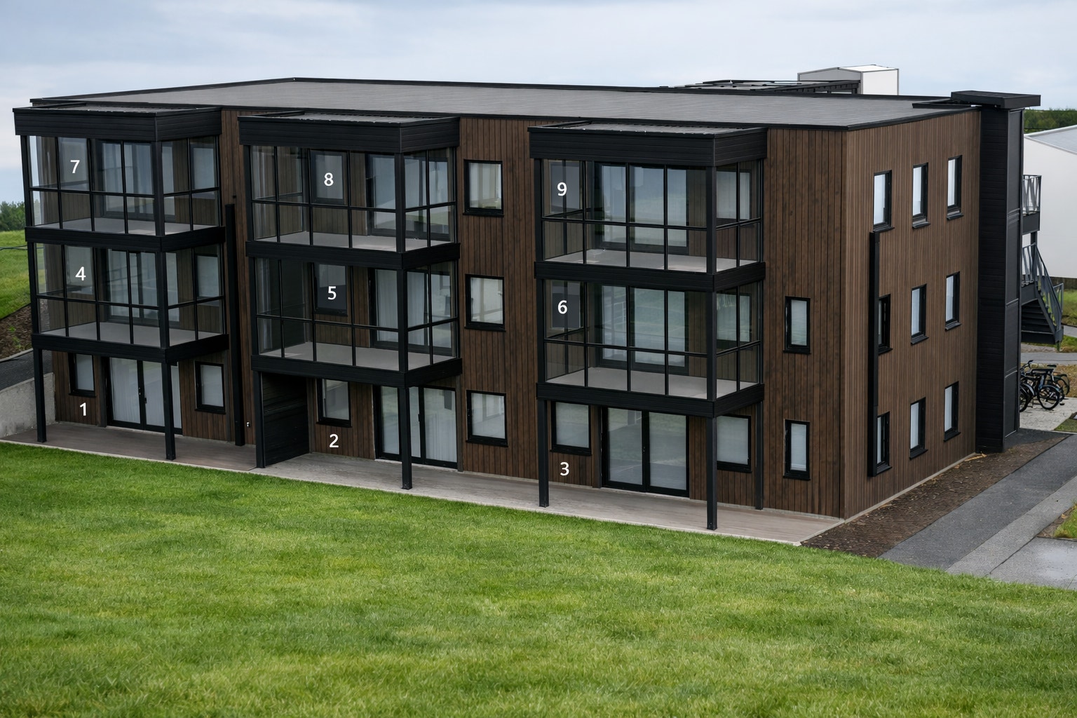 Leilighetene vil få hver sin utvendige bod i forbindelse med carport på ca. 5 kvm i felles rekke.