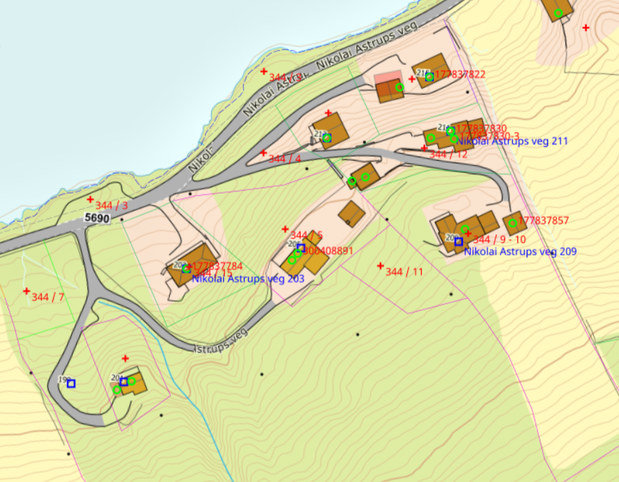 Adkomst via Nikolai Astrups veg, vidare til privat avkøyring.