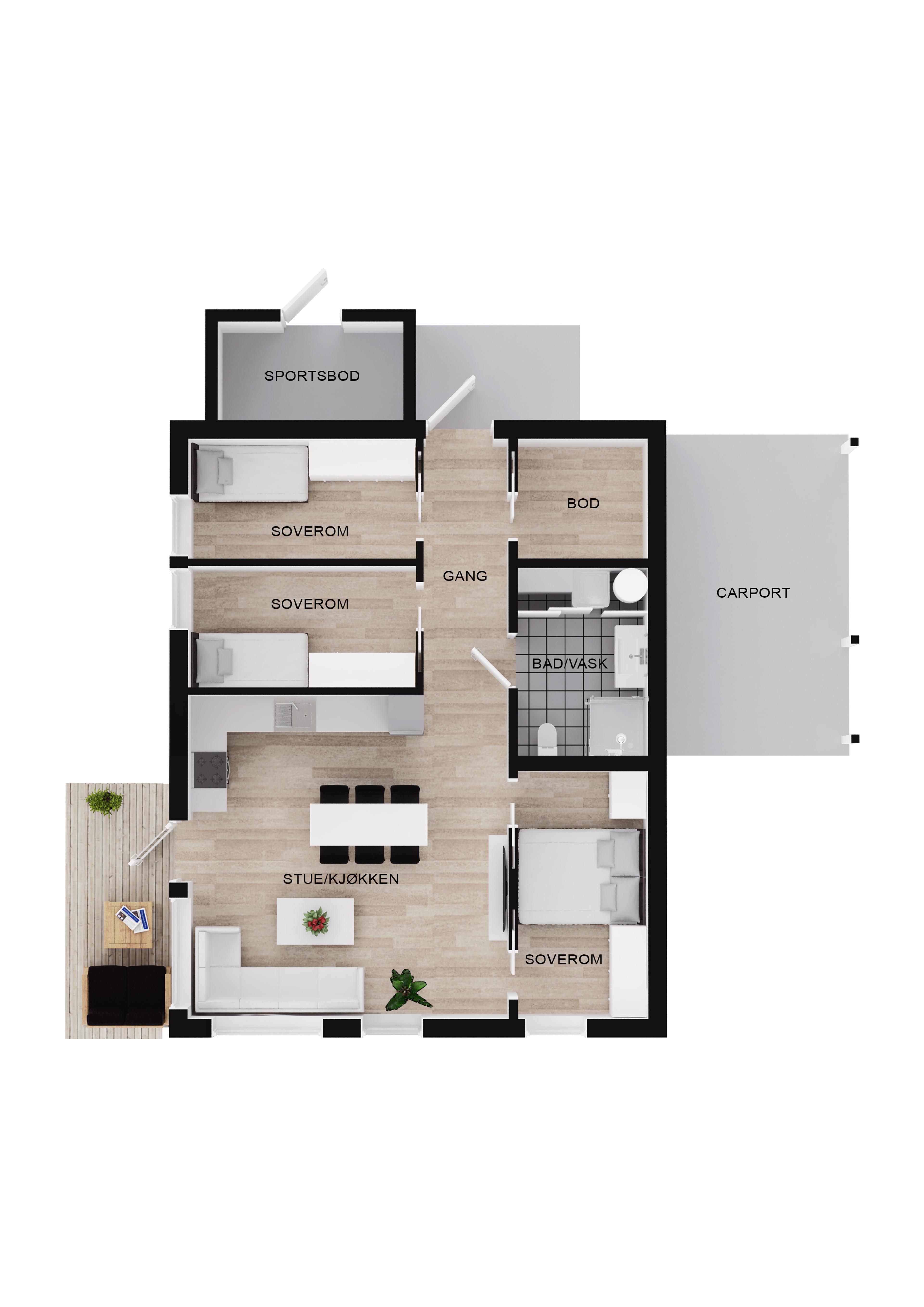 Her får du gjennomtenkt planløsning, solide materialvalg og en fleksibilitet som gjør boligen like aktuell for småbarnsfamilier som for deg som bare ønsker litt mer plass.