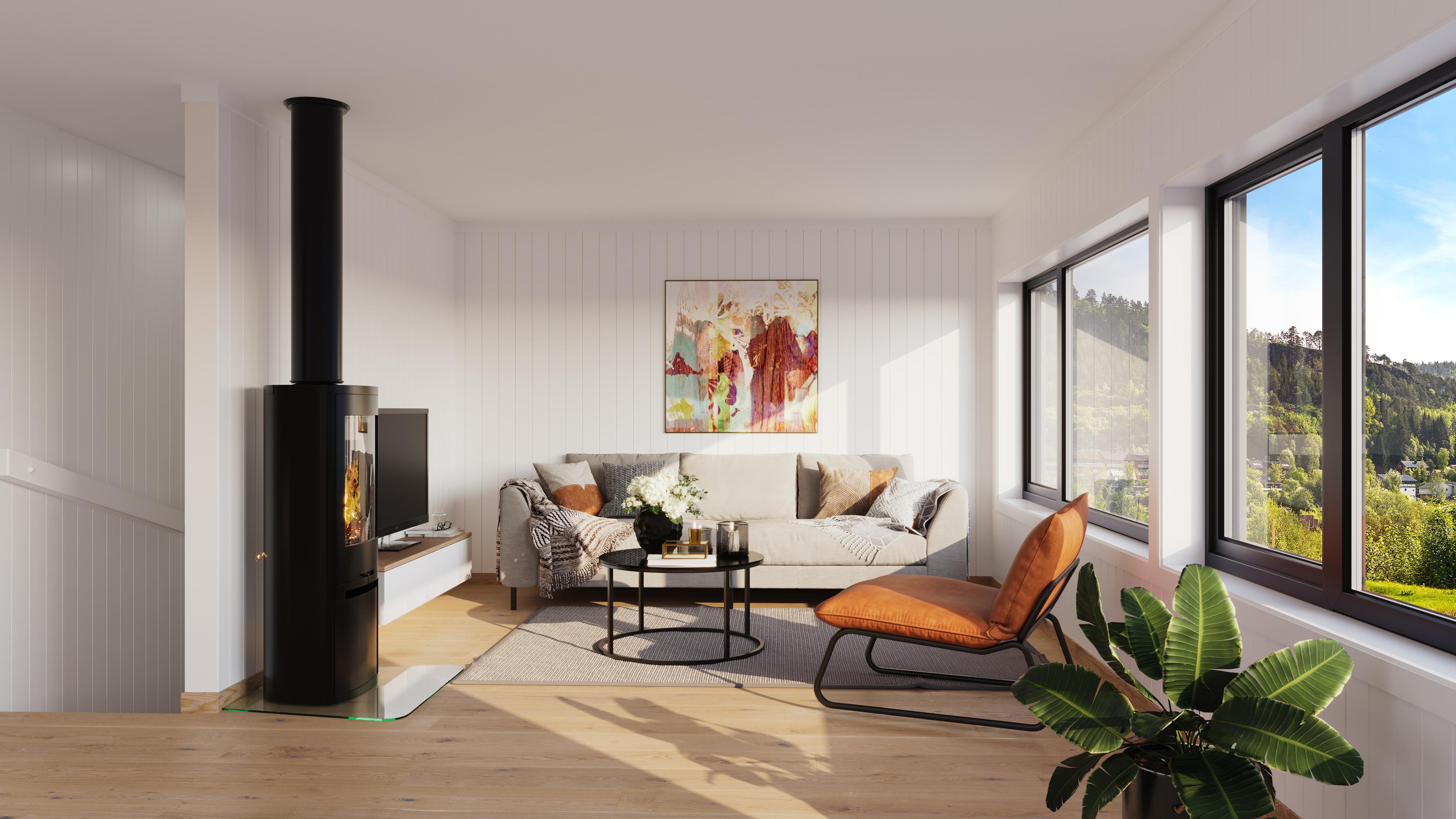 - Arkitekttegnet design: Moderne og funksjonell planløsning med store vindusflater som slipper inn rikelig med naturlig lys.